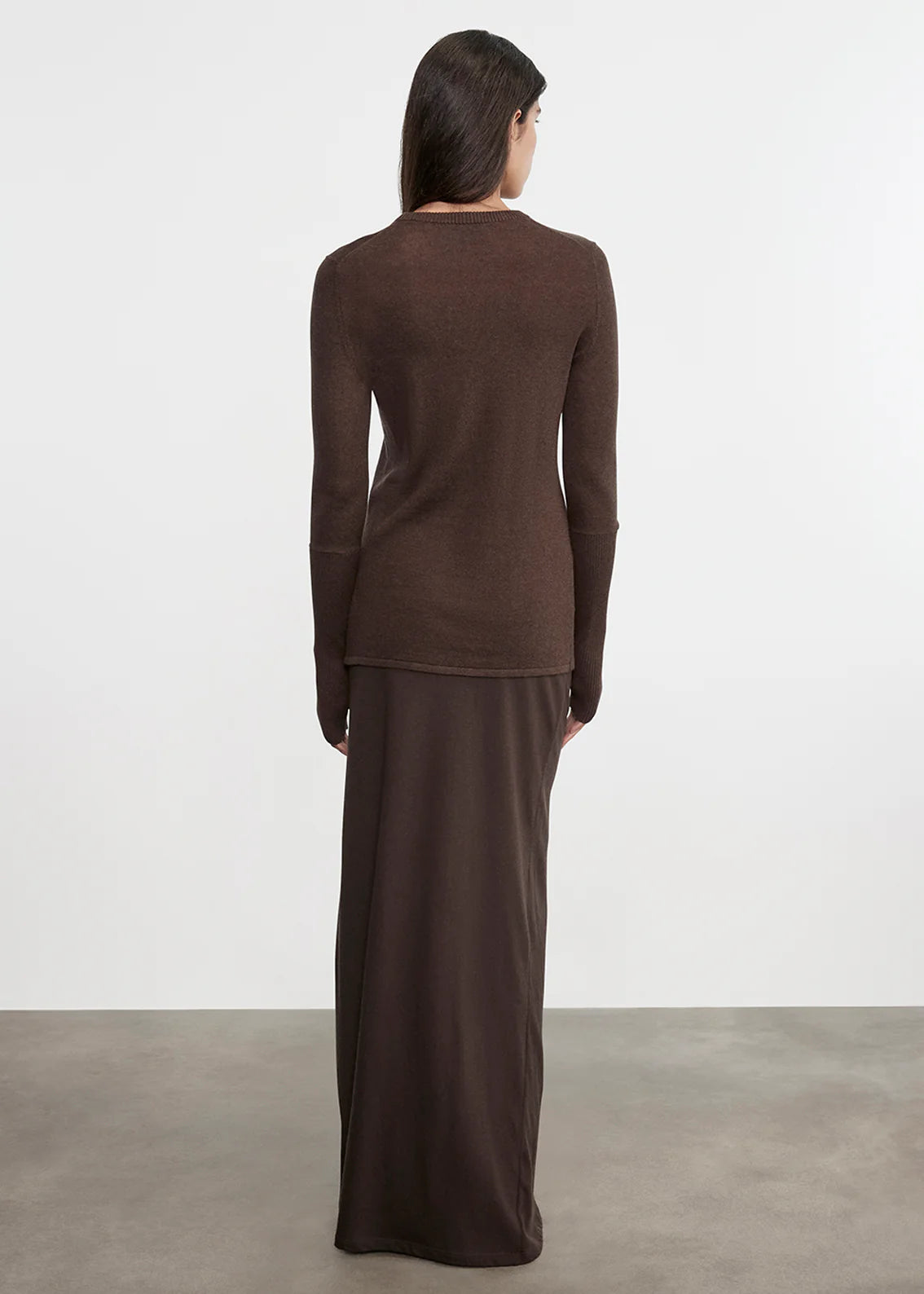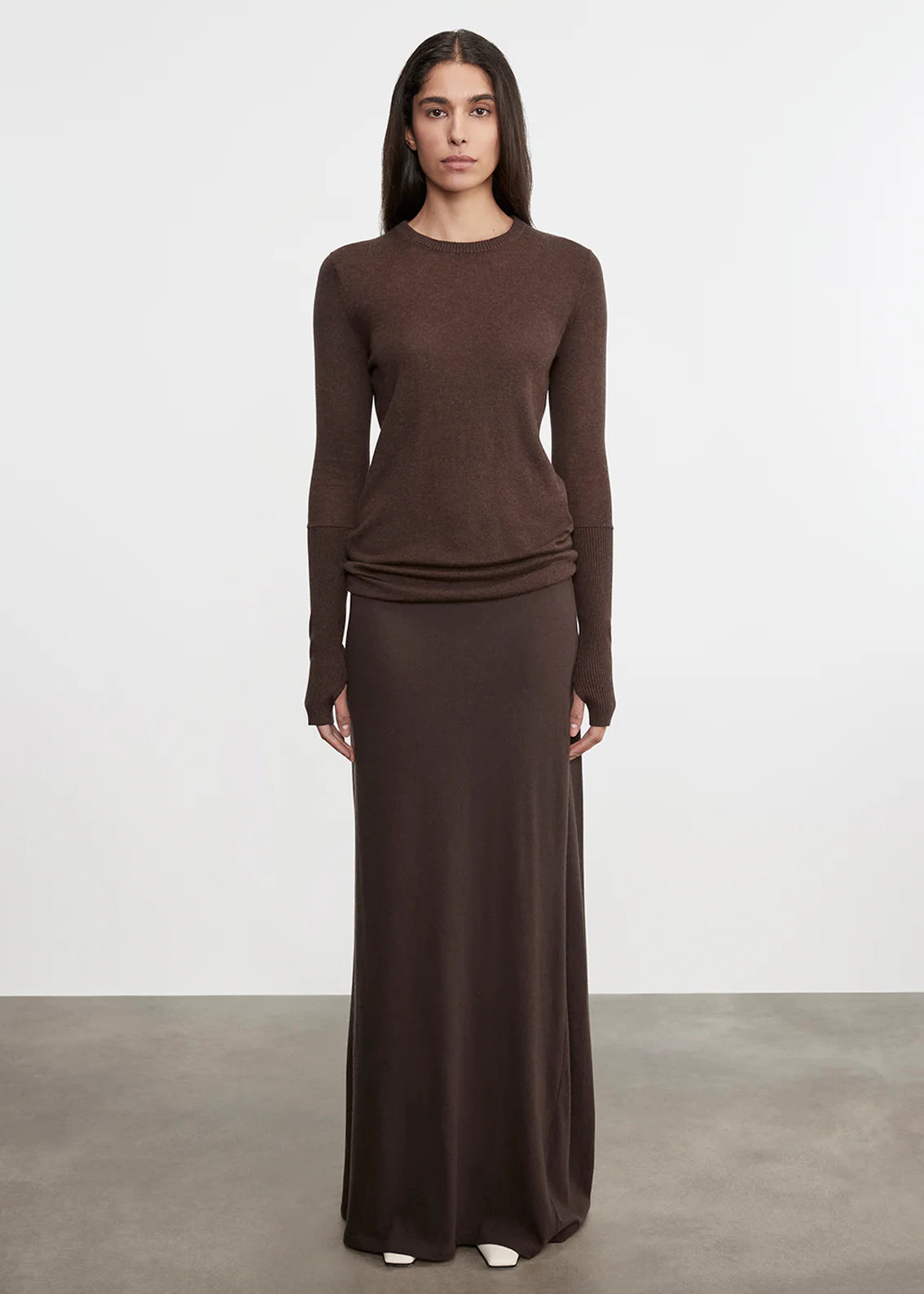 A maxi length bias skirt cut from the brand's signature soft cashmere jersey. Features an elasticized waistband.
