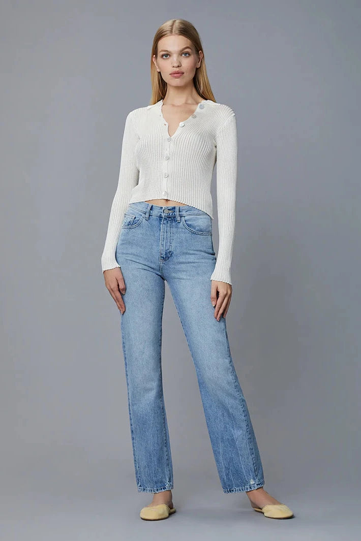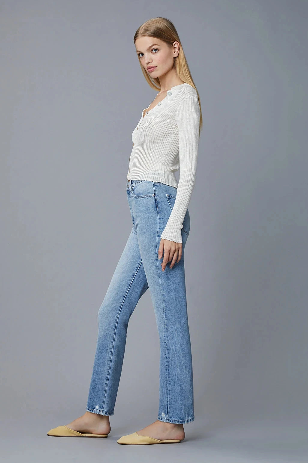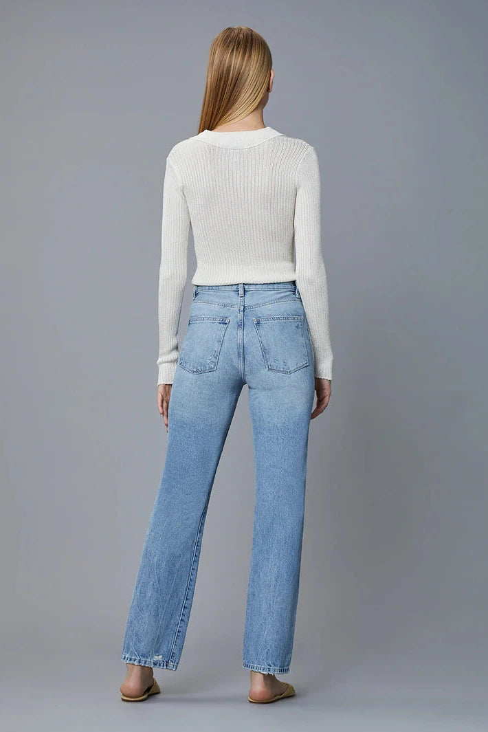 Emilie is an ultra high-rise, vintage straight fit with a 31" inseam that is relaxed from the hip through the leg.