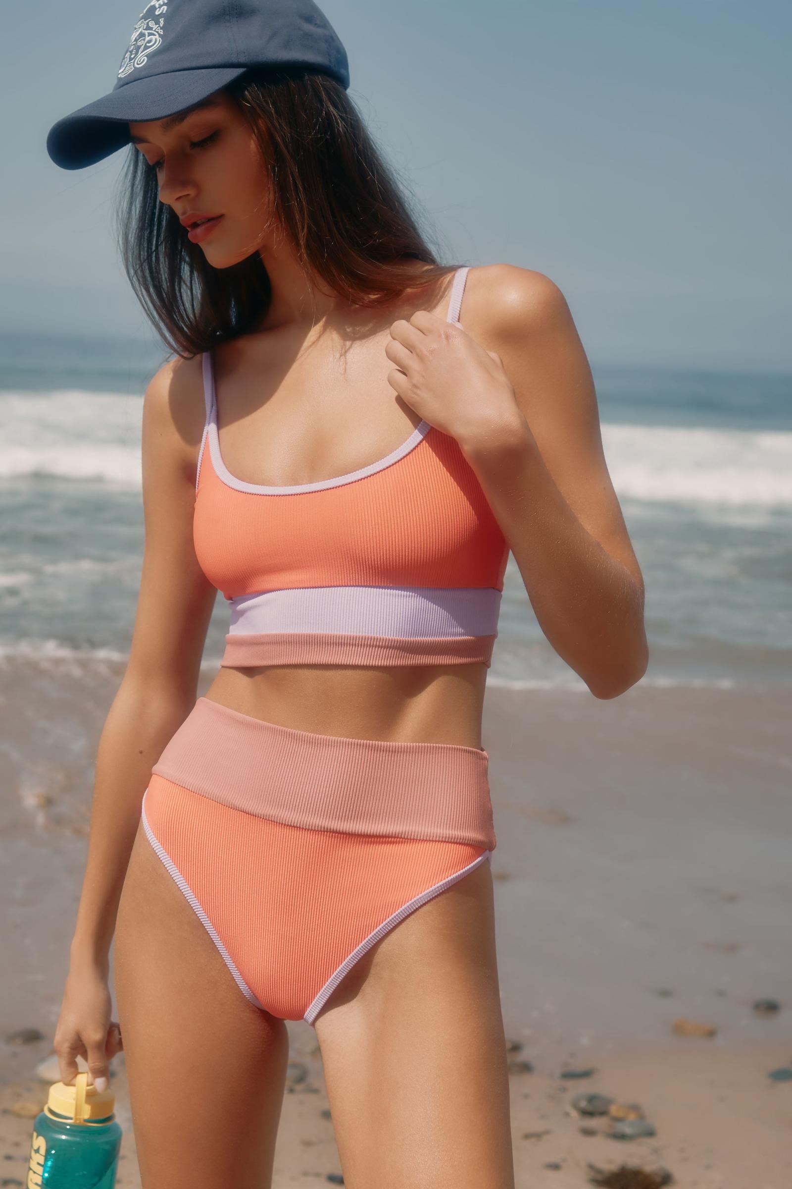 The Emmy Bikini Bottom in Oasis Colorblock is our best-selling hi-rise swim bottom. This high-waisted bottom features our ultra-soft ribbed fabric. Pair with the matching Eva Top.