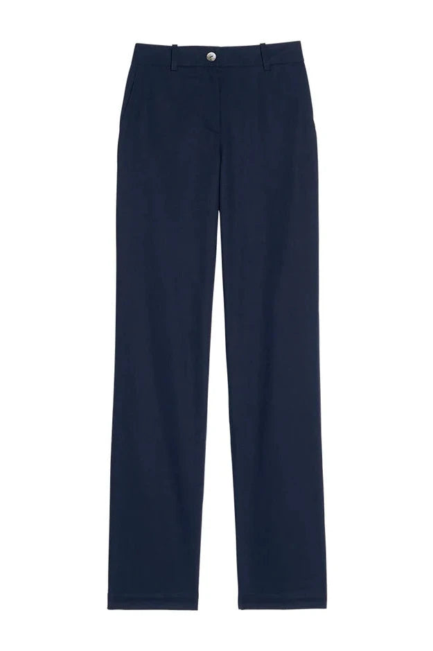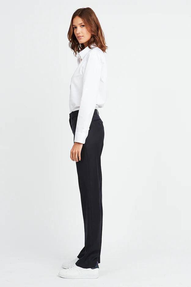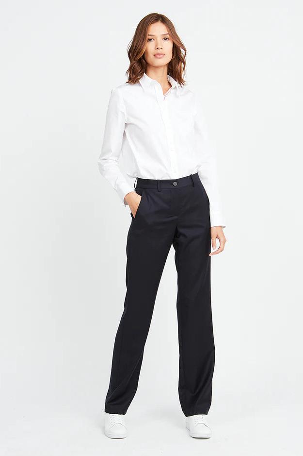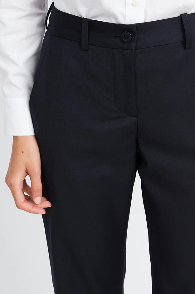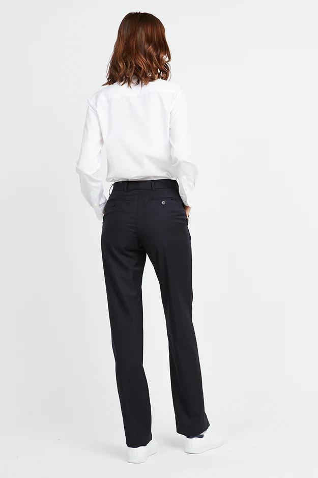 The new Francisco classic trousers in the timeless navy blue colour will complement your everyday looks perfectly. The straight cut of this woolen basic will dress up any figure all year round.