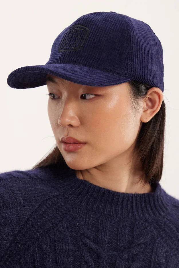 Adopt the new timeless cap in navy blue corduroy, embroidered with our iconic oak leaf logo. Ines de la Fressange has always been a fan of the oak leaf, particularly fond of its aesthetic, and chose it as her emblem when she launched the brand that bears her name in 1991.