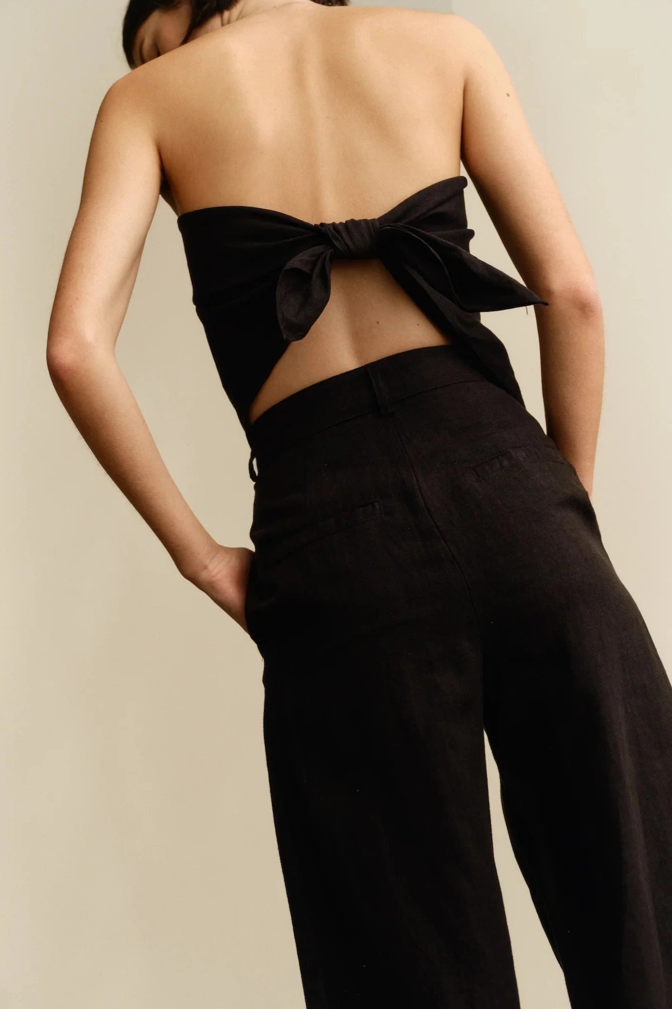 Our scarf top is crafted from 100% linen for comfort and breathability. A simple and elegant design, the scarf ties at the back, creating a straight neckline and adjustable fit. Pair it back to the Linen Trouser or the Linen Bias Skirt for a coordinated look.