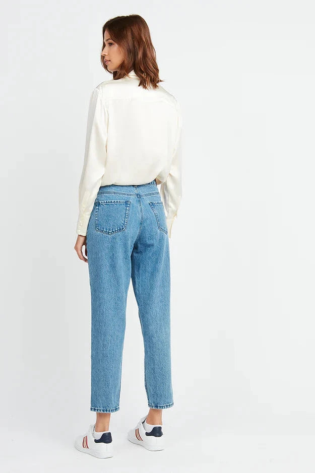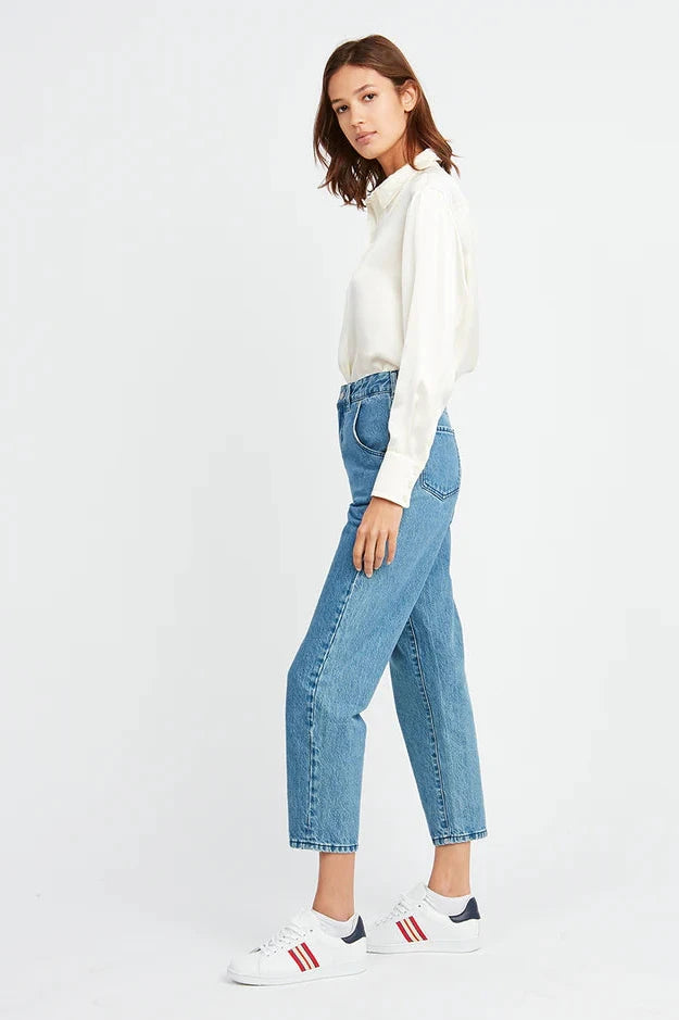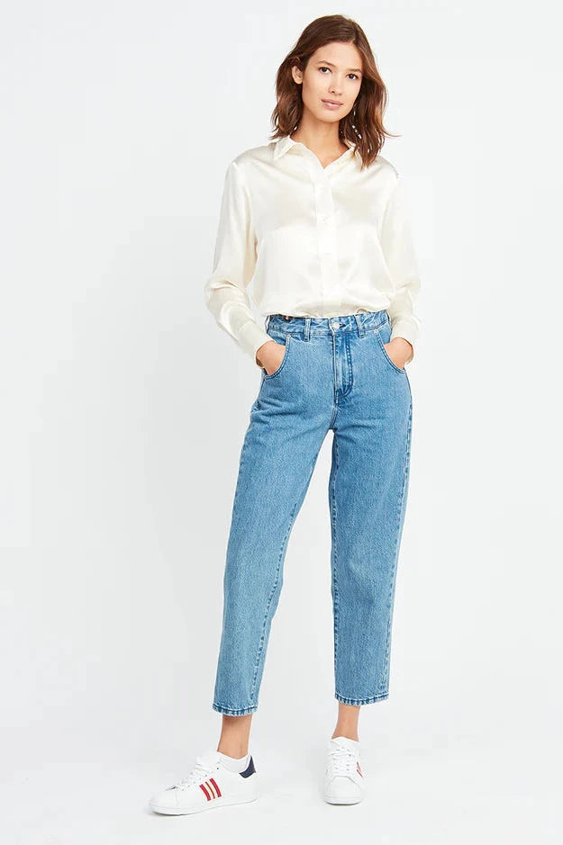 This model was designed in collaboration with Atelier Notify, a renowned jeans specialist. The new Mom light blue jeans Luna will give you a modern and casual look. This straight jean has a vintage spirit, with its high and wide waist will highlight your waist.