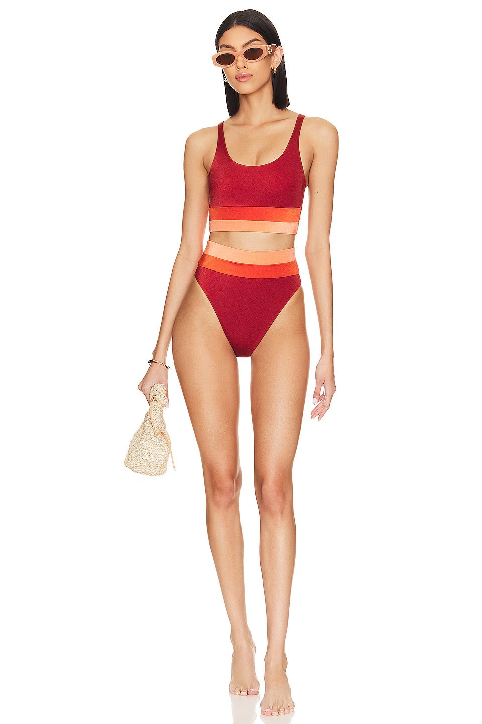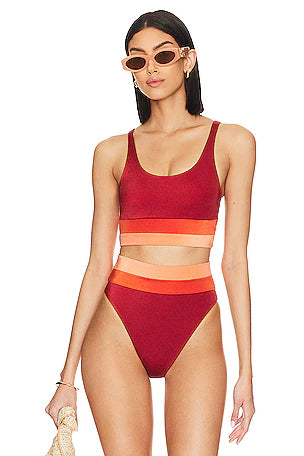 The Mackenzie Top is a pull-on style and cropped silhouette with thick straps, a classic scoop neckline, and medium support. In our new silky Desert Clay coloblocked fabric. Pair with the match Heidi Bottoms in Desert Clay colorlbock.