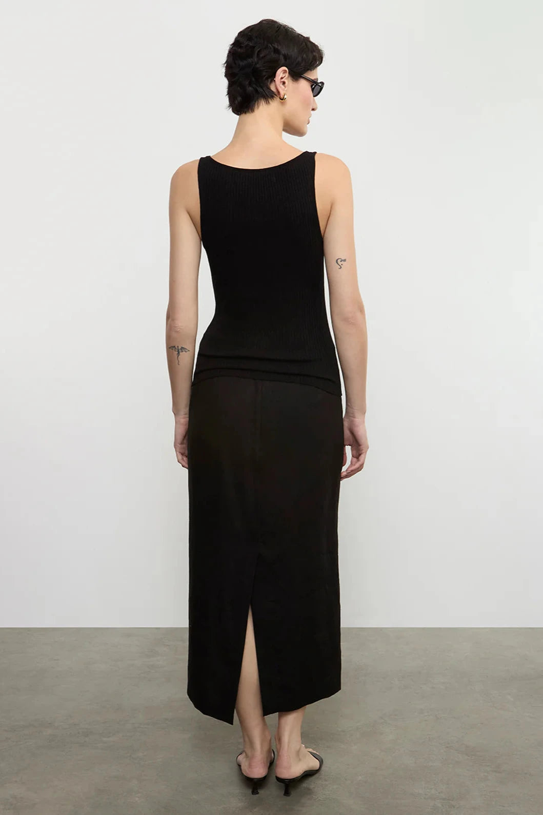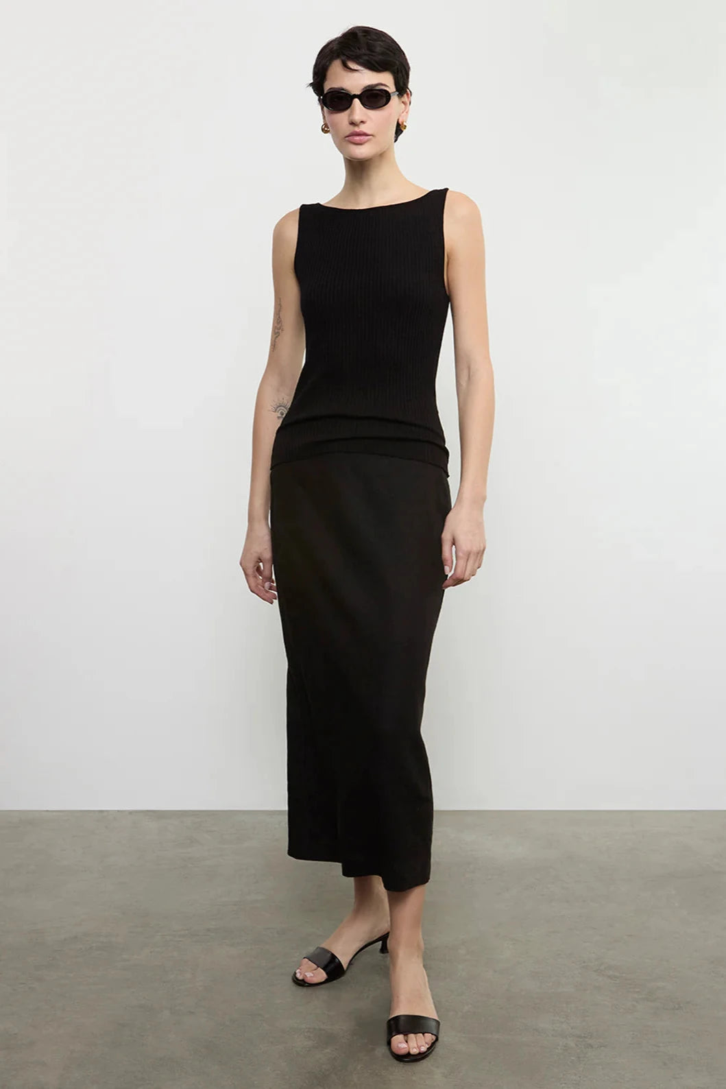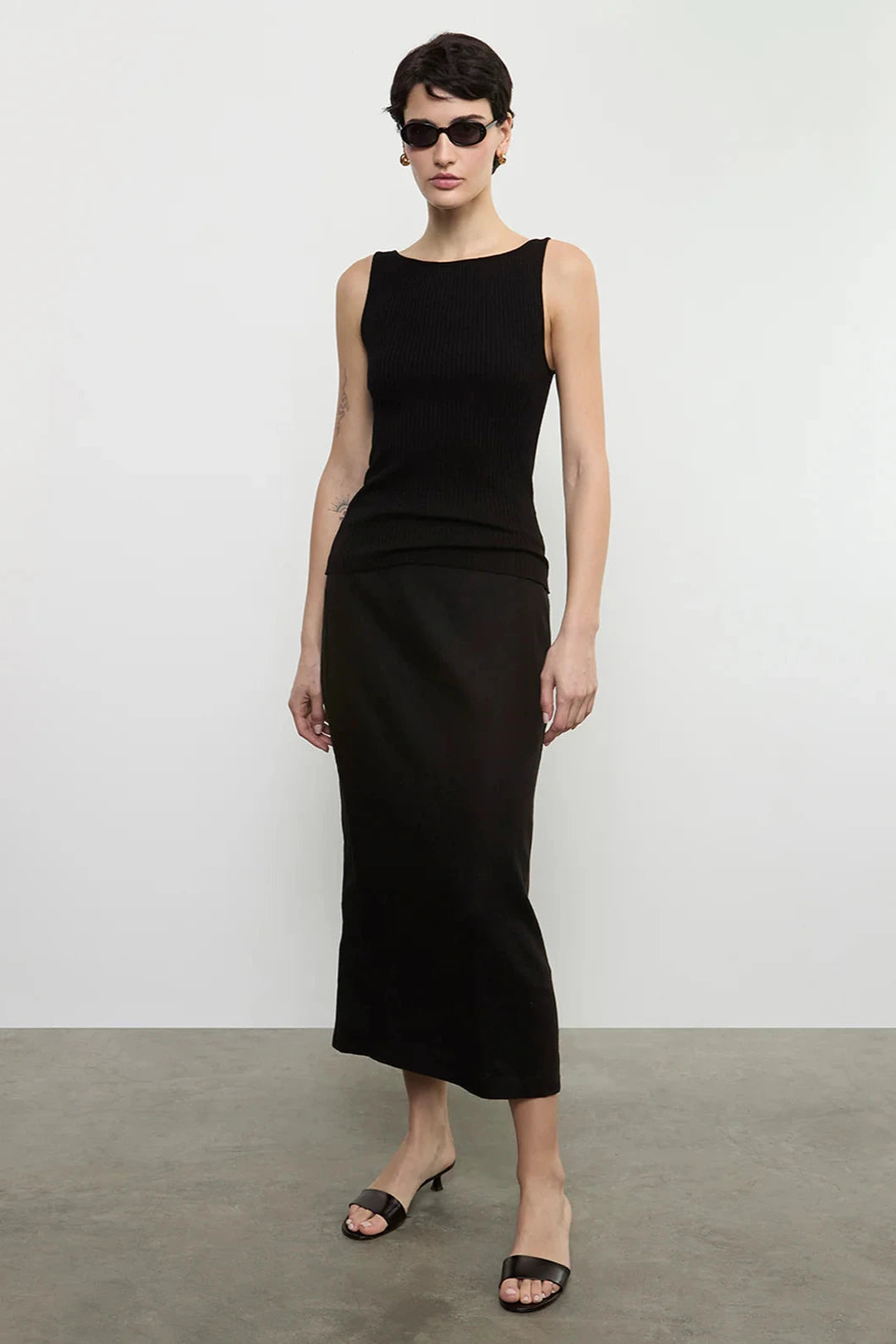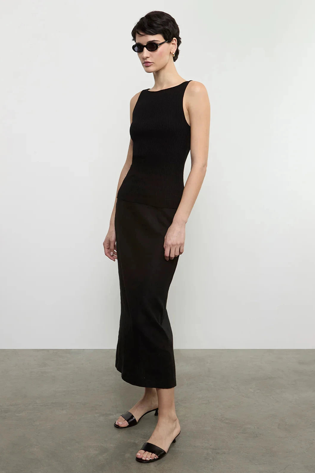 Cut from a textured cotton rib, this body-skimming tank features an elegant boat neckline.