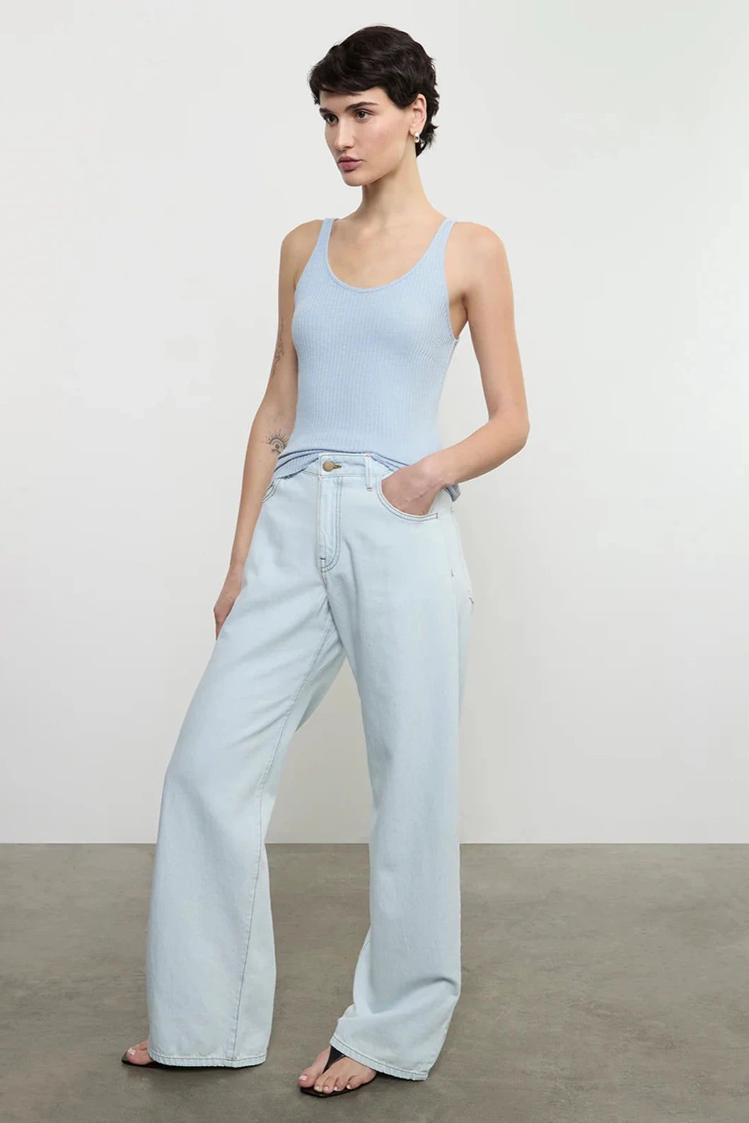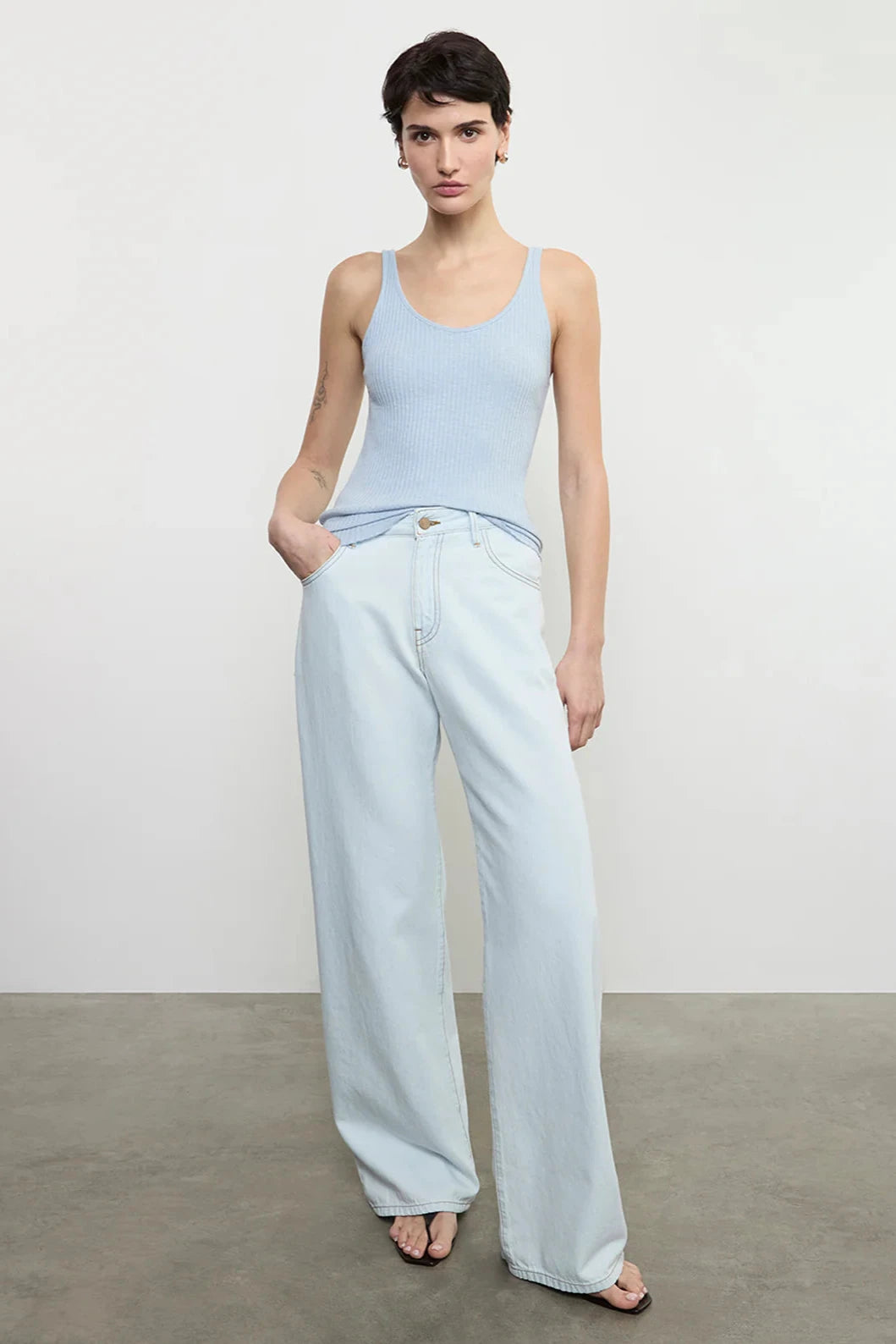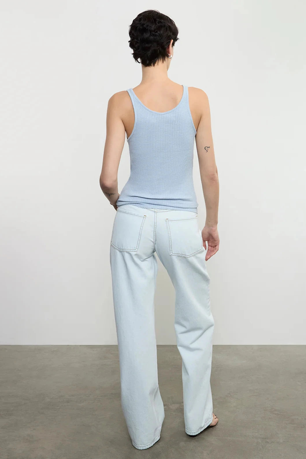 The Military Rib Slim Tank is a cut from a textured cotton rib, featuring a scoop neckline and slim, body-skimming fit.