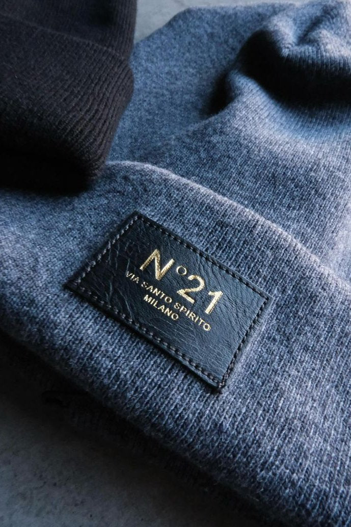 GREY VIRGIN WOOL BEANIE HAT WITH A N.21 LOGO-PRINT AT THE FRONT. RIBBED-KNIT FOLDED HEM.