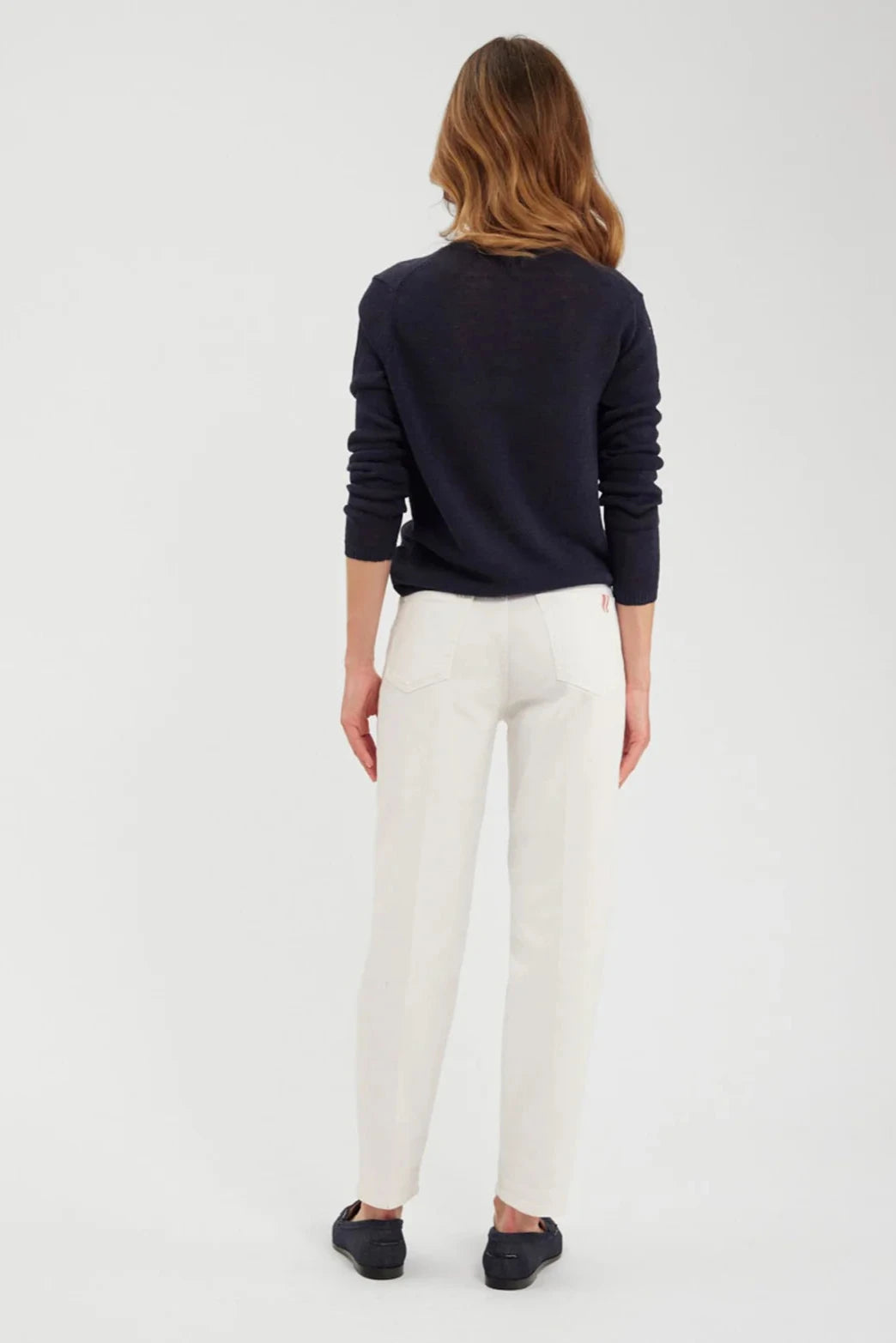 To design and manufacture its jeans, Ines de la Fressange Paris has chosen to partner with Notify, for a luxury, tailor-made spirit that is reflected in every detail. These new Mom Luna jeans in white cotton will give you a modern and casual look.