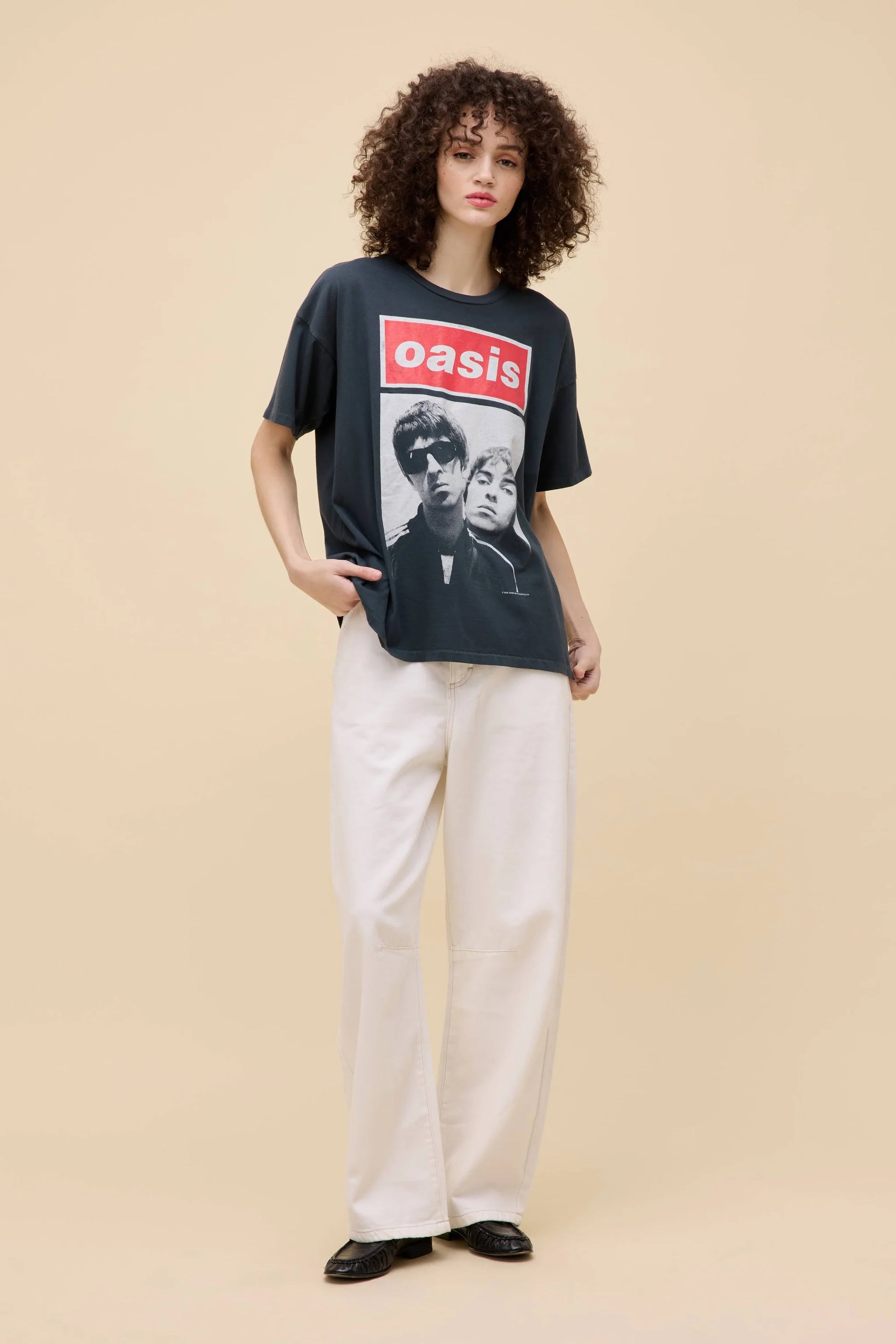 An image of Liam and Noel, the famous frontmen and feuding brothers who fueled the band’s creative energy, is featured alongside Oasis' iconic logo.