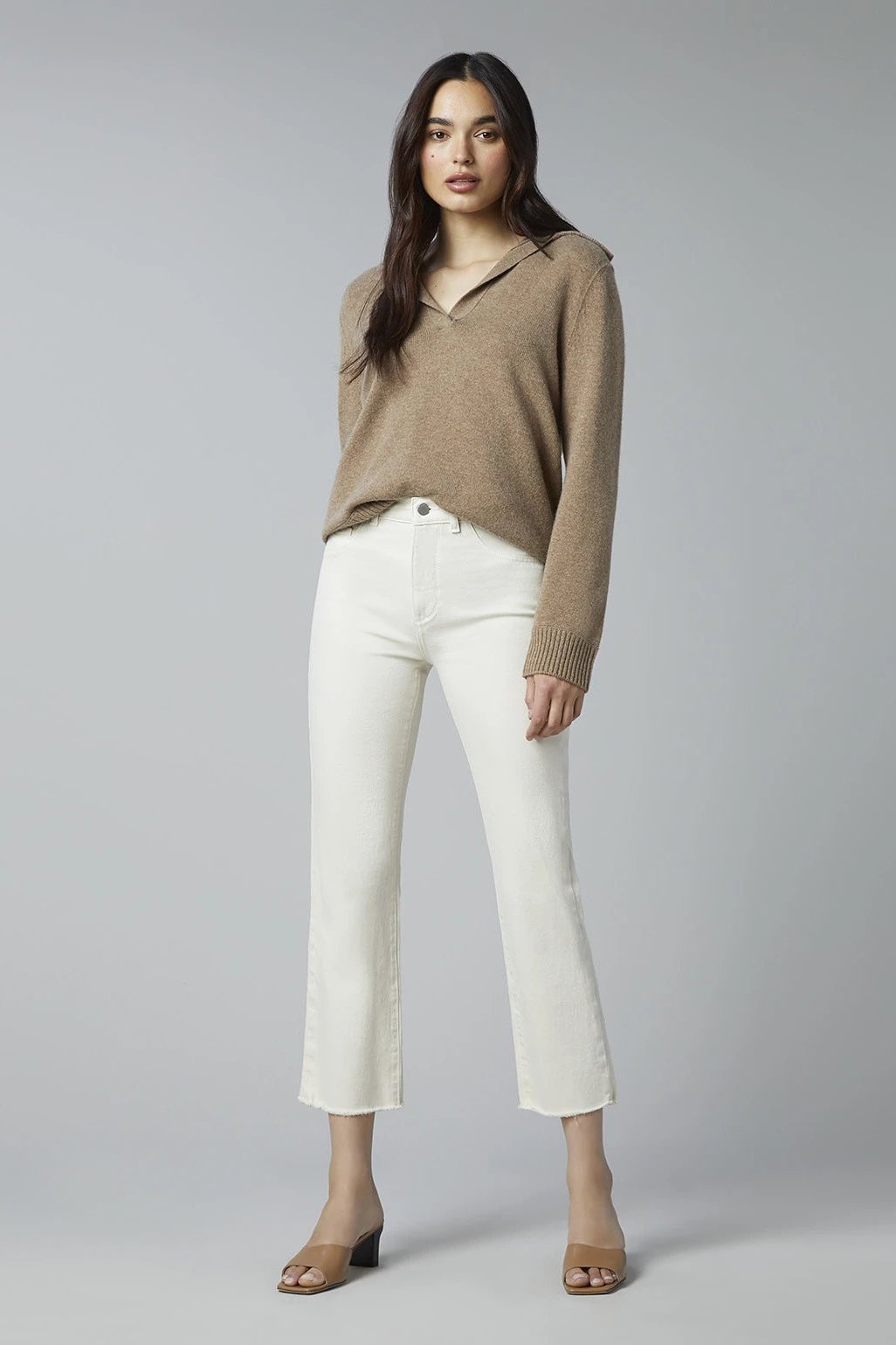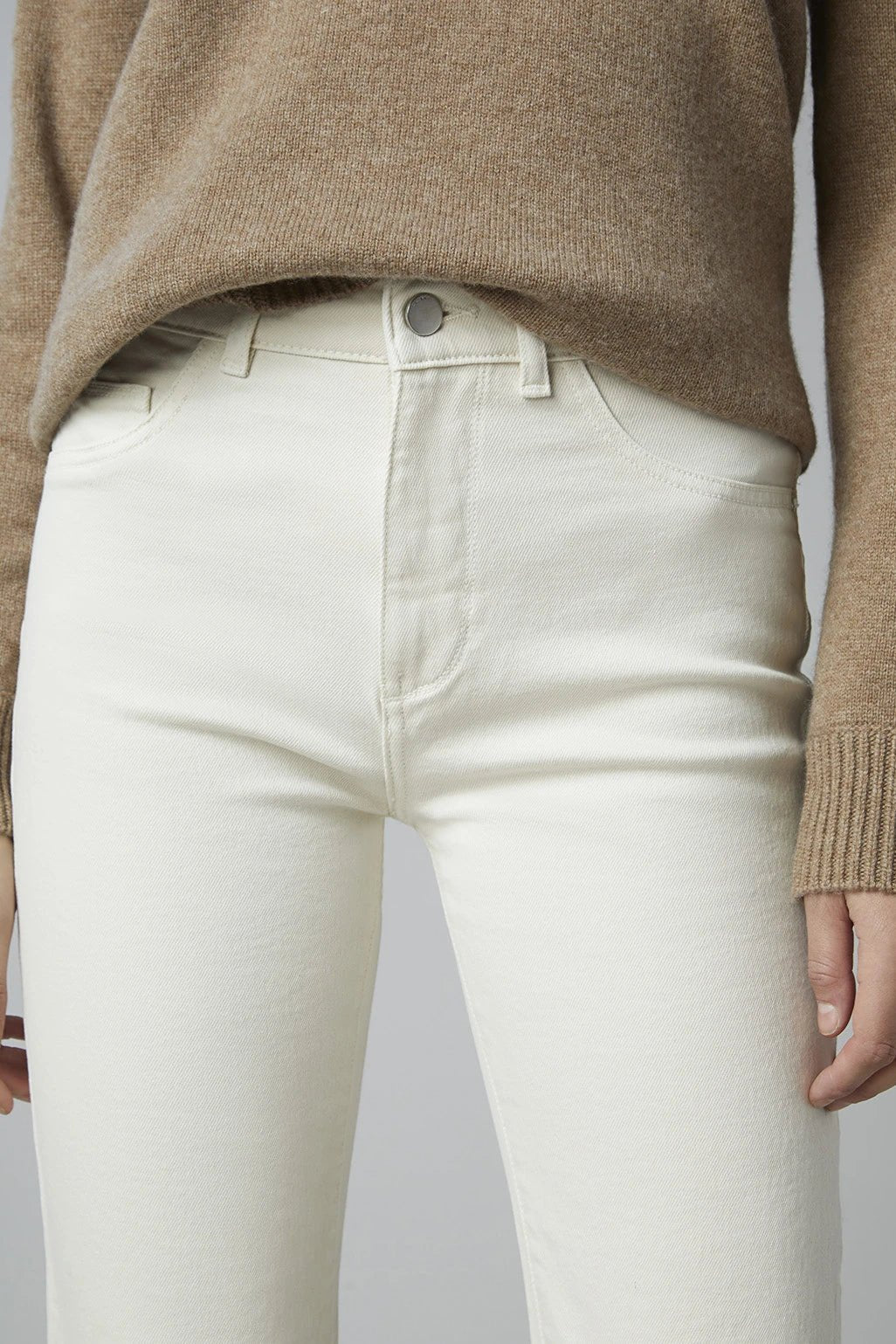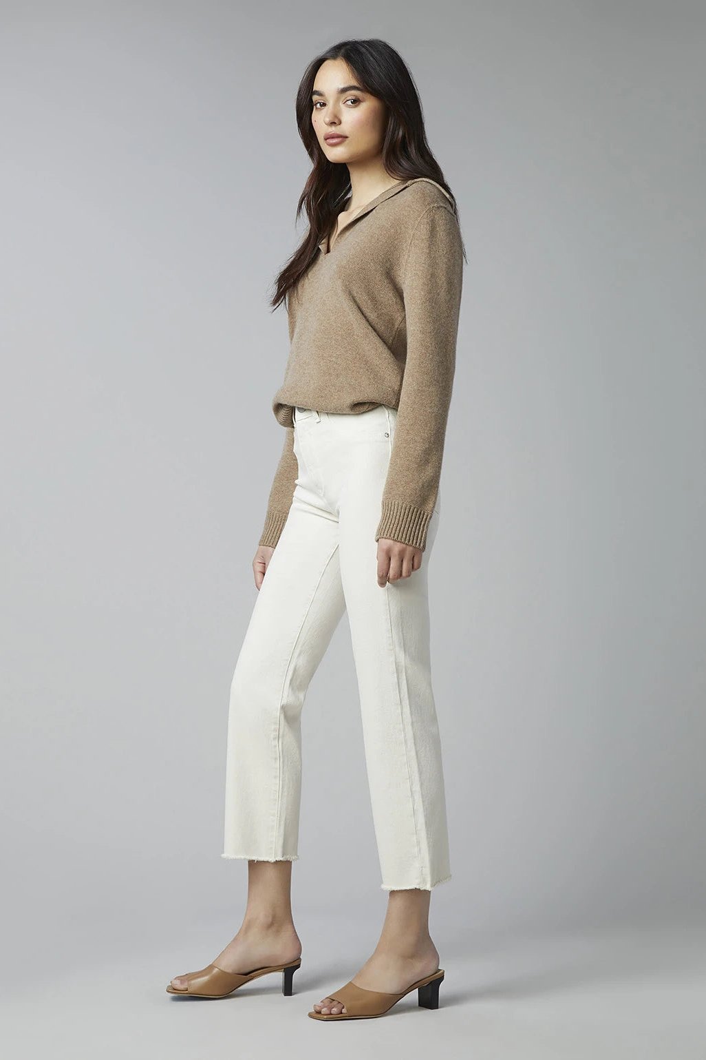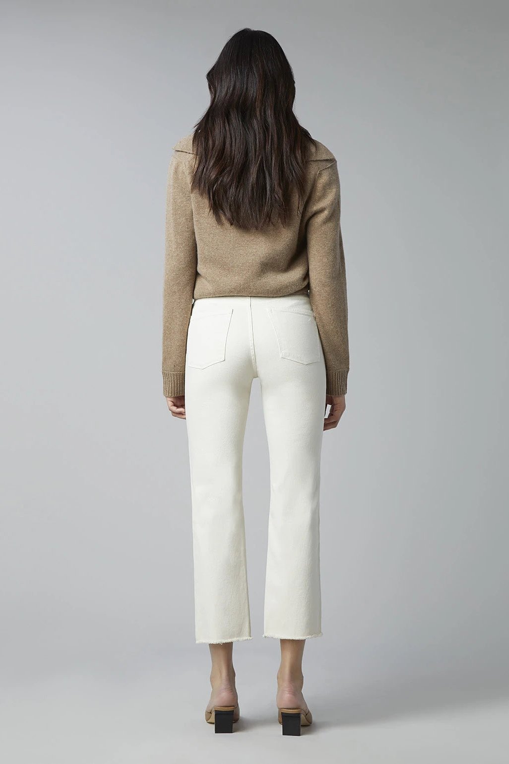 Ecru is a natural colored denim made without the use of harmful abrasives or dyes. It utilizes botanic Tencel™ that lends an ultra-soft hand feel and certified cotton for a fit you can feel good about wearing. Ecru omits the use of rivets and only utilizes non-electroplated & recycled trims for easier up-cycling. This wash takes under seven gallons of water to produce, while industry standard is 1500 gallons. Patti Straight Ecru has tonal stitching, faux front pockets and a raw hem.