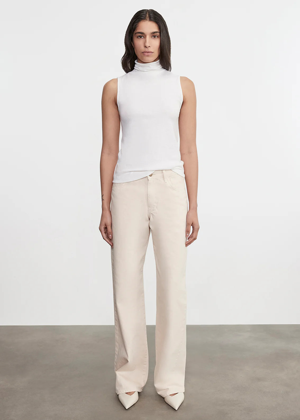 A high-rise, straight-leg trouser made from a mid-weight denim with a classic 5-pocket construction.