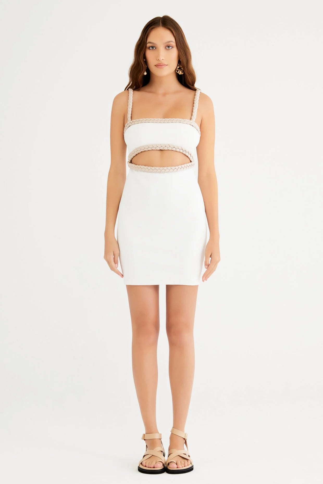 Head into your next event in style with our showstopping Riviera Mini. Crafted from a luxe textured knit, this classic mini features thick (non-adjustable) straps, a stunning cut-out detail at the centre waist and gorgeous rope detailing. If you are between sizes, we recommend sizing down in this style.