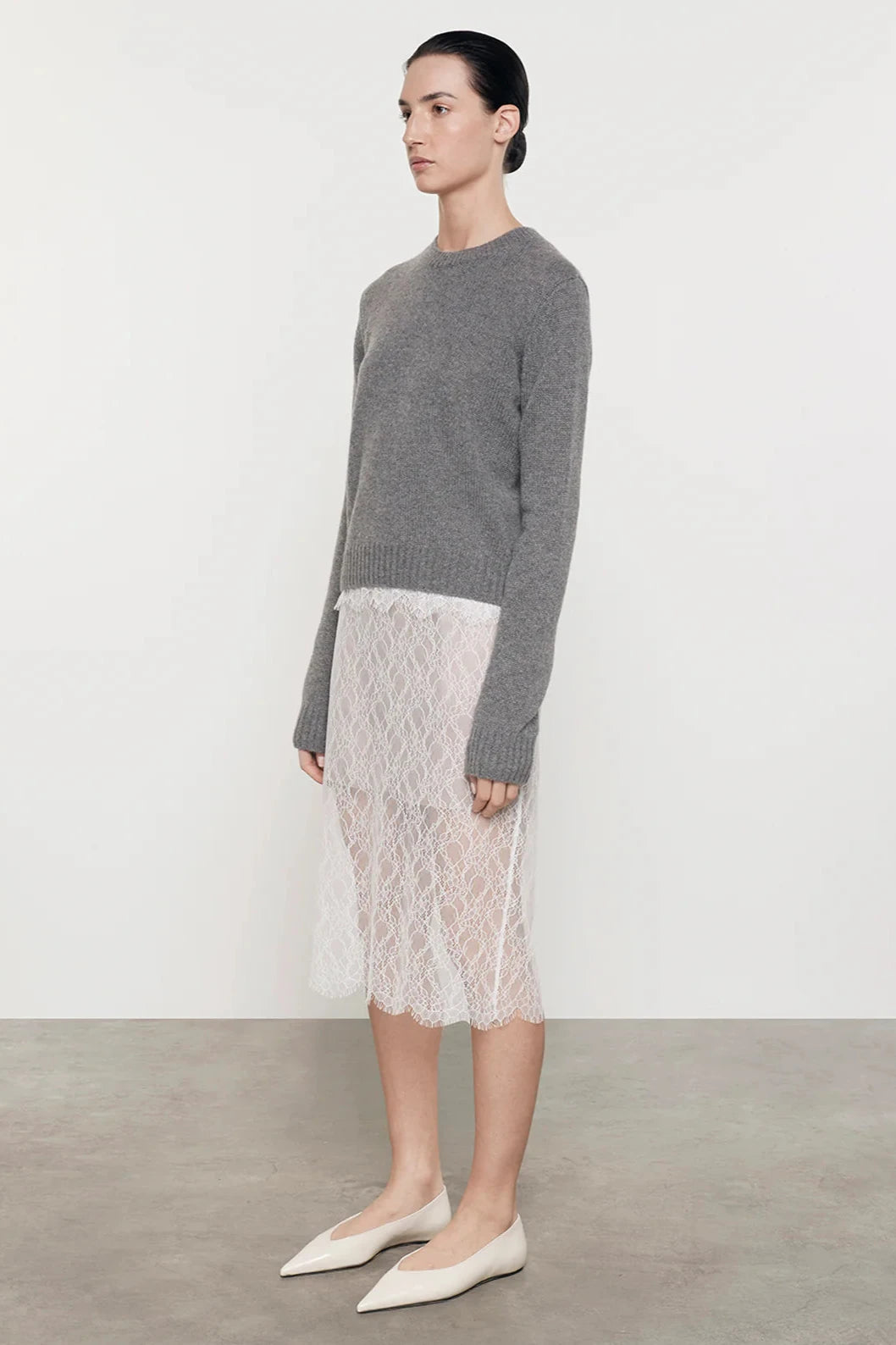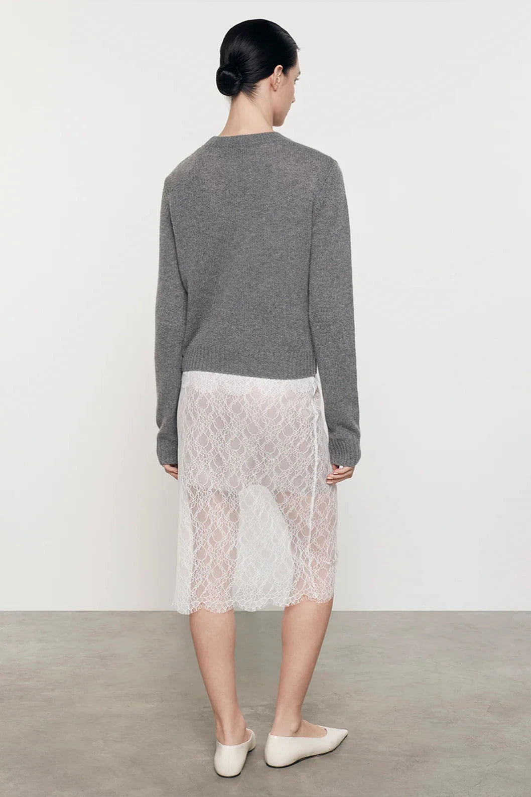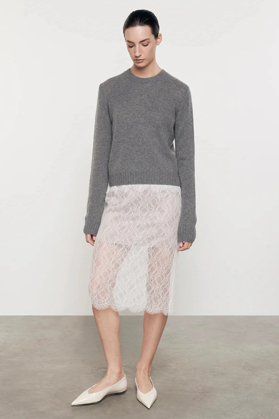 Our Sheer Lace Slip Skirt is the perfect blend of romance and sophistication, featuring a delicate lace overlay, a shorter lining, a hidden side-zip closure, and an eyelash hem.
