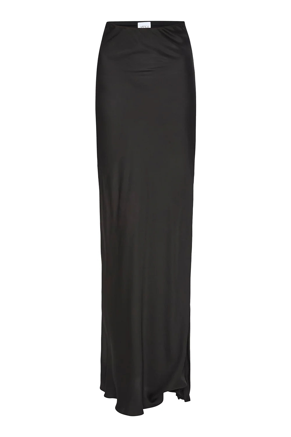 Our new Sierra skirt is a maxi a-line silhouette with a gathered waist and hidden side zip closure. Cut from black satin, pair this staple skirt can be paired with any of our tops or a chunky sweater as the weather begins to cool down.