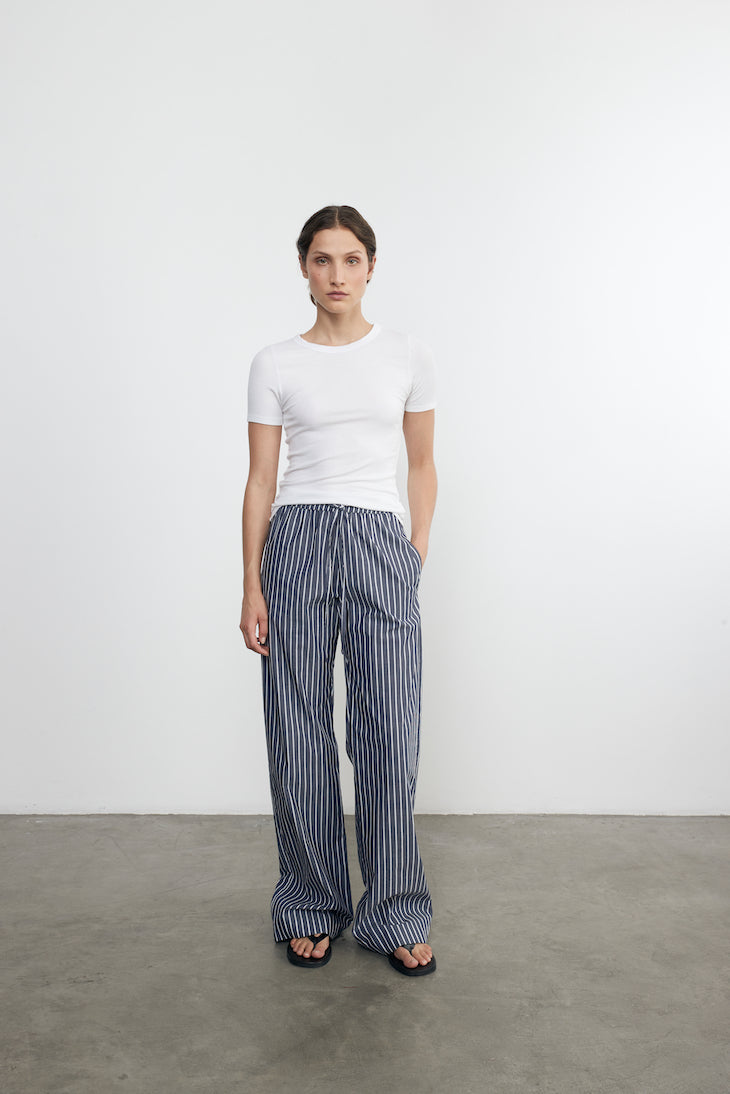 Our Silk Knit Essential Tee is cut from the brand's ultra-soft stretch silk rib material. This essential tee features a sheath neckline and a slim fit with a banded trim.