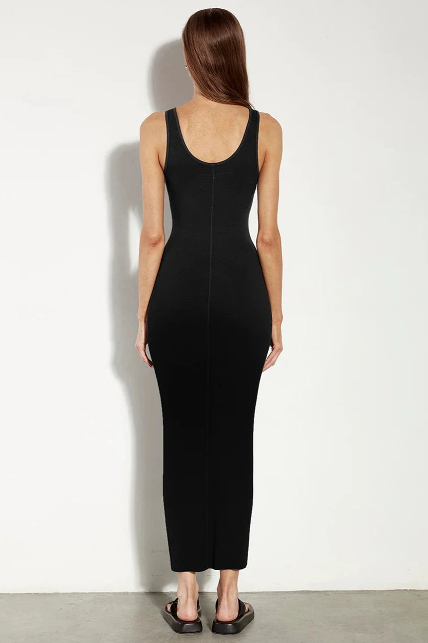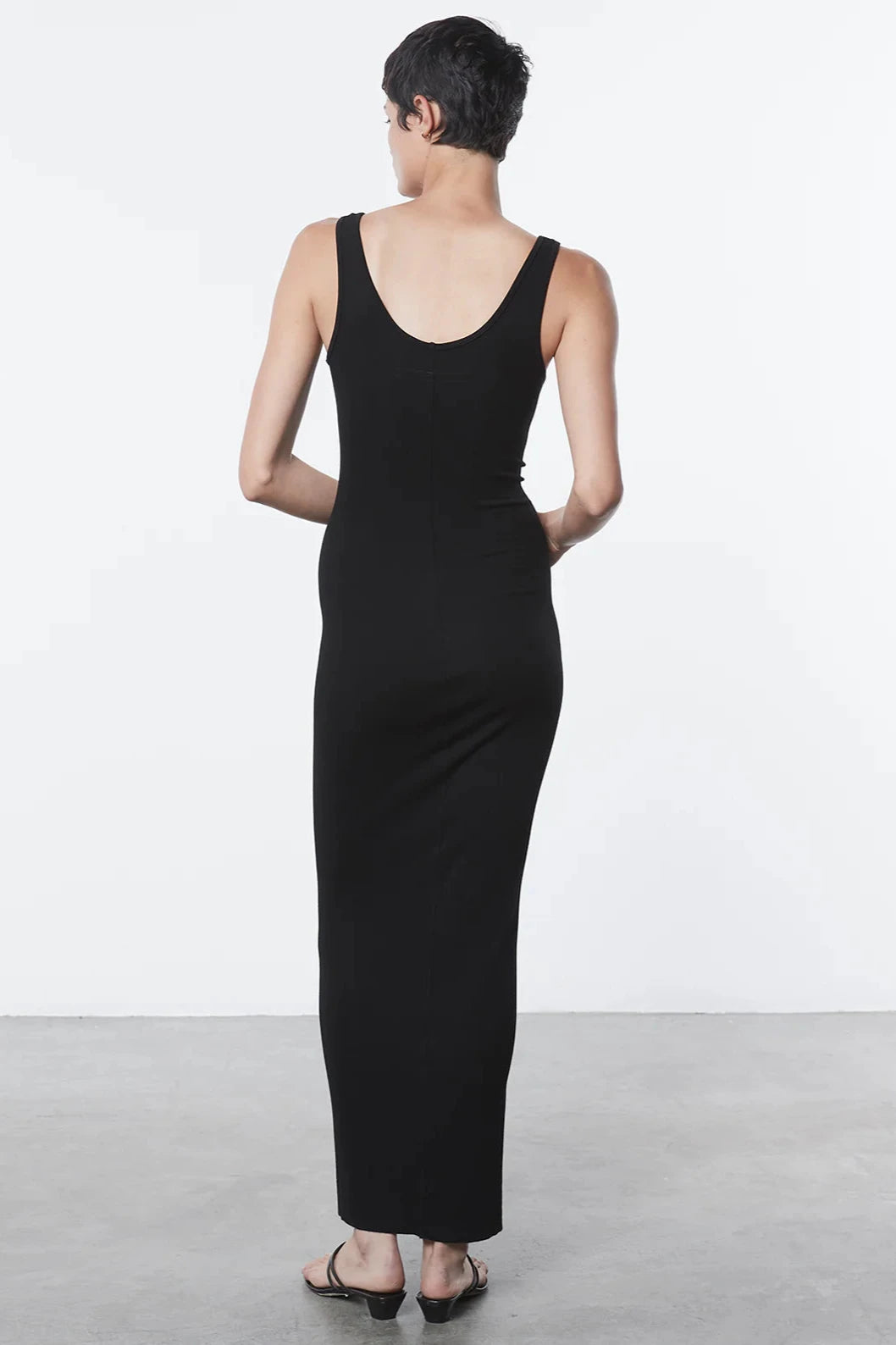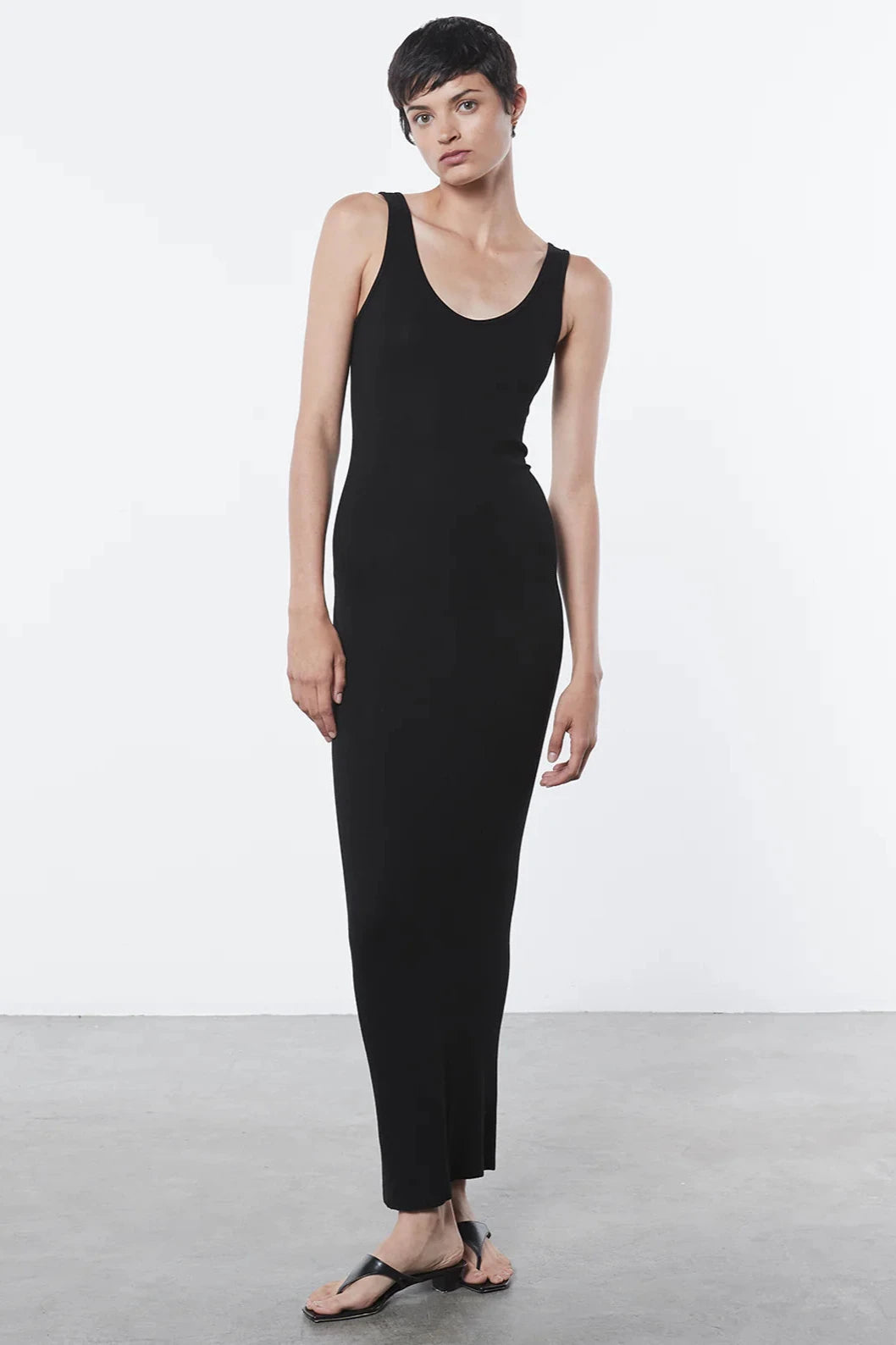 The silk rib maxi dress features an iconic shape with a body-hugging fit, flattering stretch, and the brand's signature center back seam. This best-seller is crafted from our luxurious silk rib fabric for a soft feel and long-lasting quality.