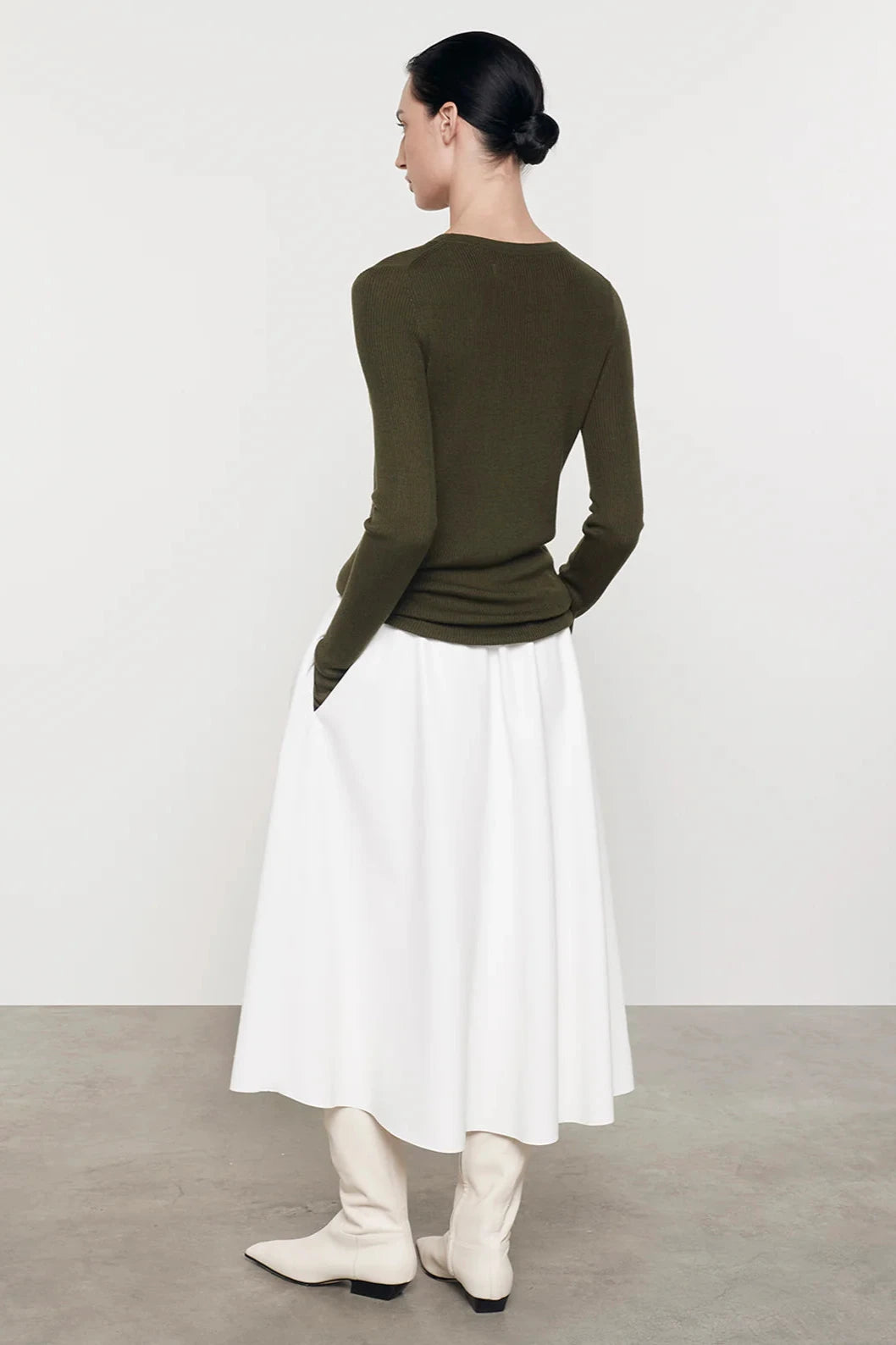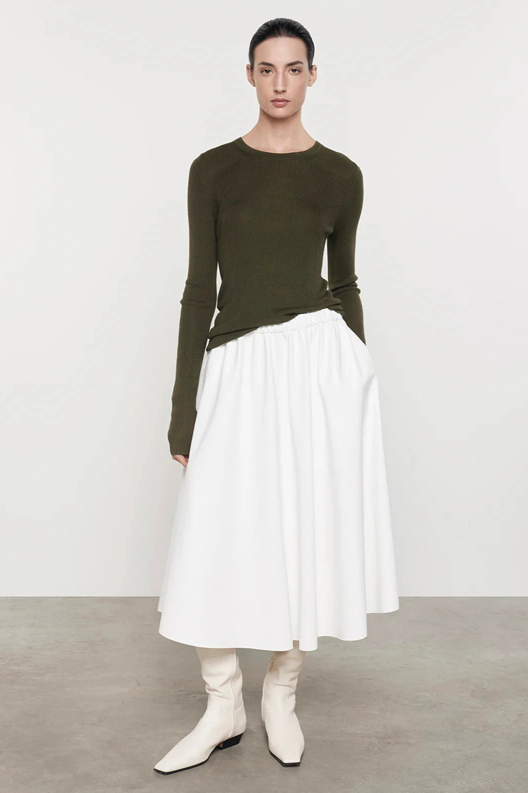 This silk knit sweater is crafted with the most touchable softness. Designed for a relaxed fit with a crew neckline and unfinished hems, it's a versatile staple for a cool-weather wardrobe.