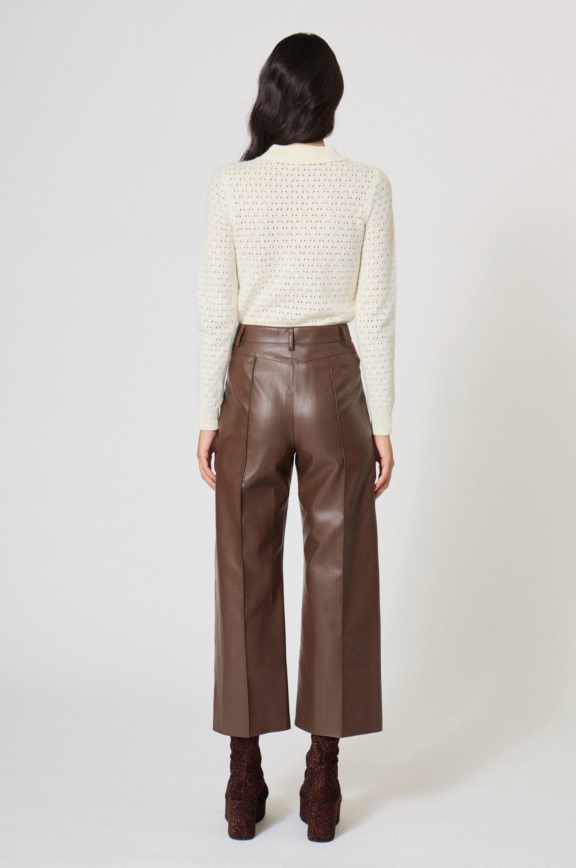 Cropped trousers in faux-leather. High waist. Flattering seaming for added dimension.