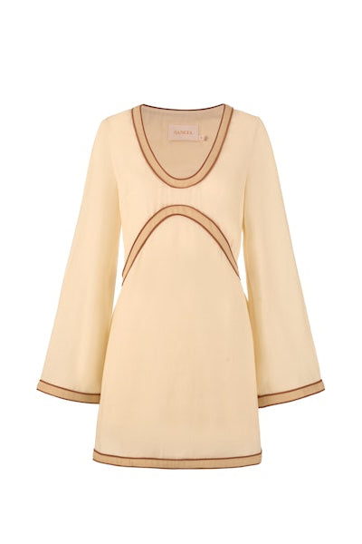Designed with a unique vintage feel in mind, the Luella dress is the perfect long sleeve mini to add to your wardrobe. The dress has all the flattering shapes of its predecessor, featuring the signature contrast binding and elegant v-neckline. Perfect for a cocktail event or wear out to dinner with heels or knee-high boots to embrace a 60s retro look.