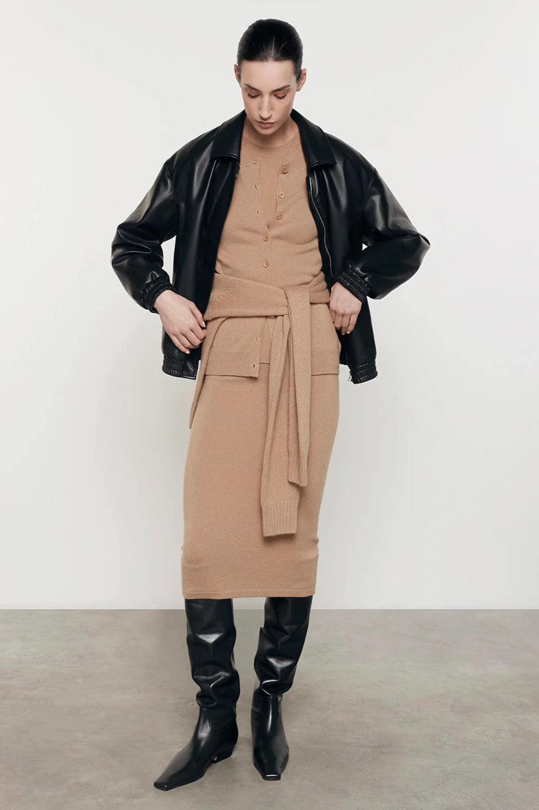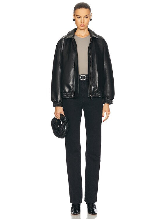 Inspired by the classic flight jacket, this timeless piece is crafted from our luxe vegan leather and features an elasticated waistband that enhances the loose fit.