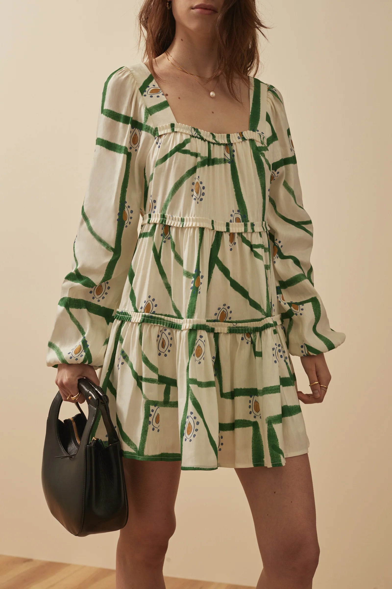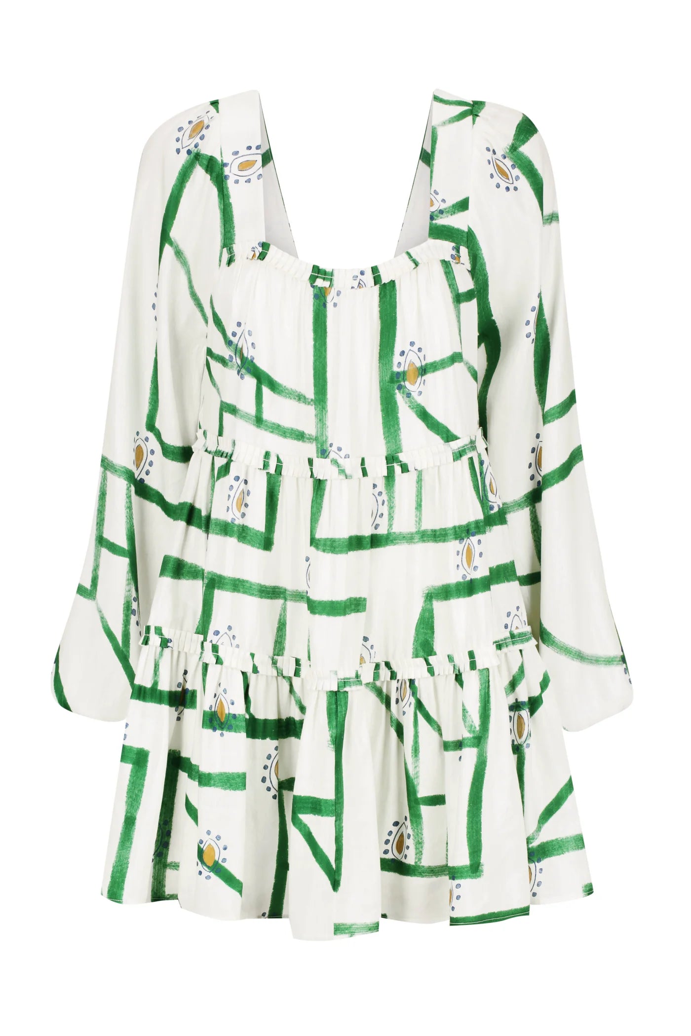 The Fernanda Dress has an effortlessly bohemian feel. Designed in a floaty shape, it has gathered tiers which are highlighted by a delicate hand-pleated frill detail and an elegant sweetheart neckline. The gorgeous full-length sleeves are beautifully lightweight while still holding their statement blouson shape.