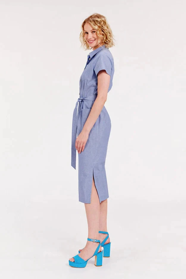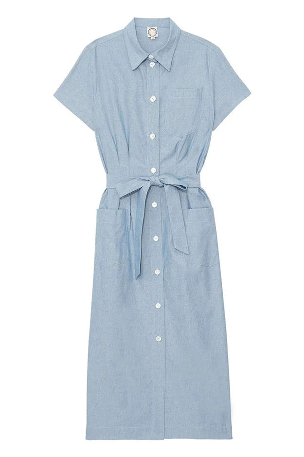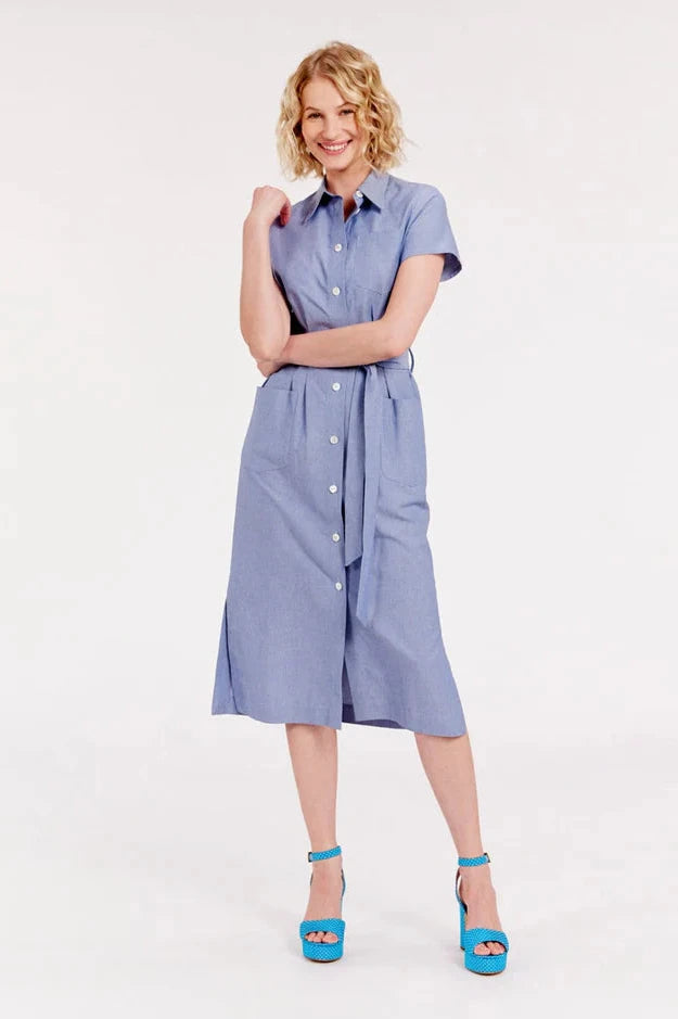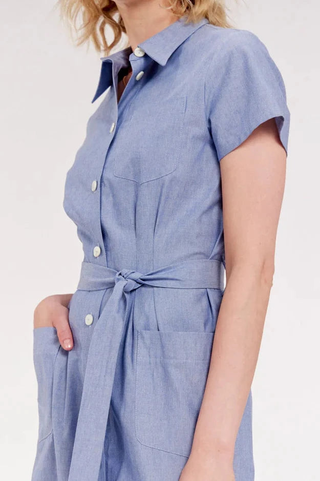 Descubre el vestido camisero Ethel. Este vestido de manga corta es elegante, se ata a la cintura con su cinturón para afinar y embellecer tu.