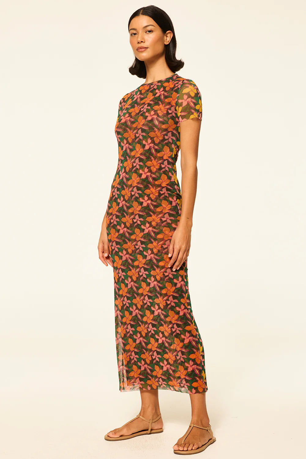 The Vanessa dress—a best-selling favorite—returns in vibrant Plumeria Mix stretch mesh. This fitted pullover style features a crew neckline, short sleeves, and contrasting front and back panels in the same bold print. Double lined yet slightly sheer, it offers just the right amount of stretch for a flattering, comfortable fit. Pair with everything from flat sandals to strappy heels.