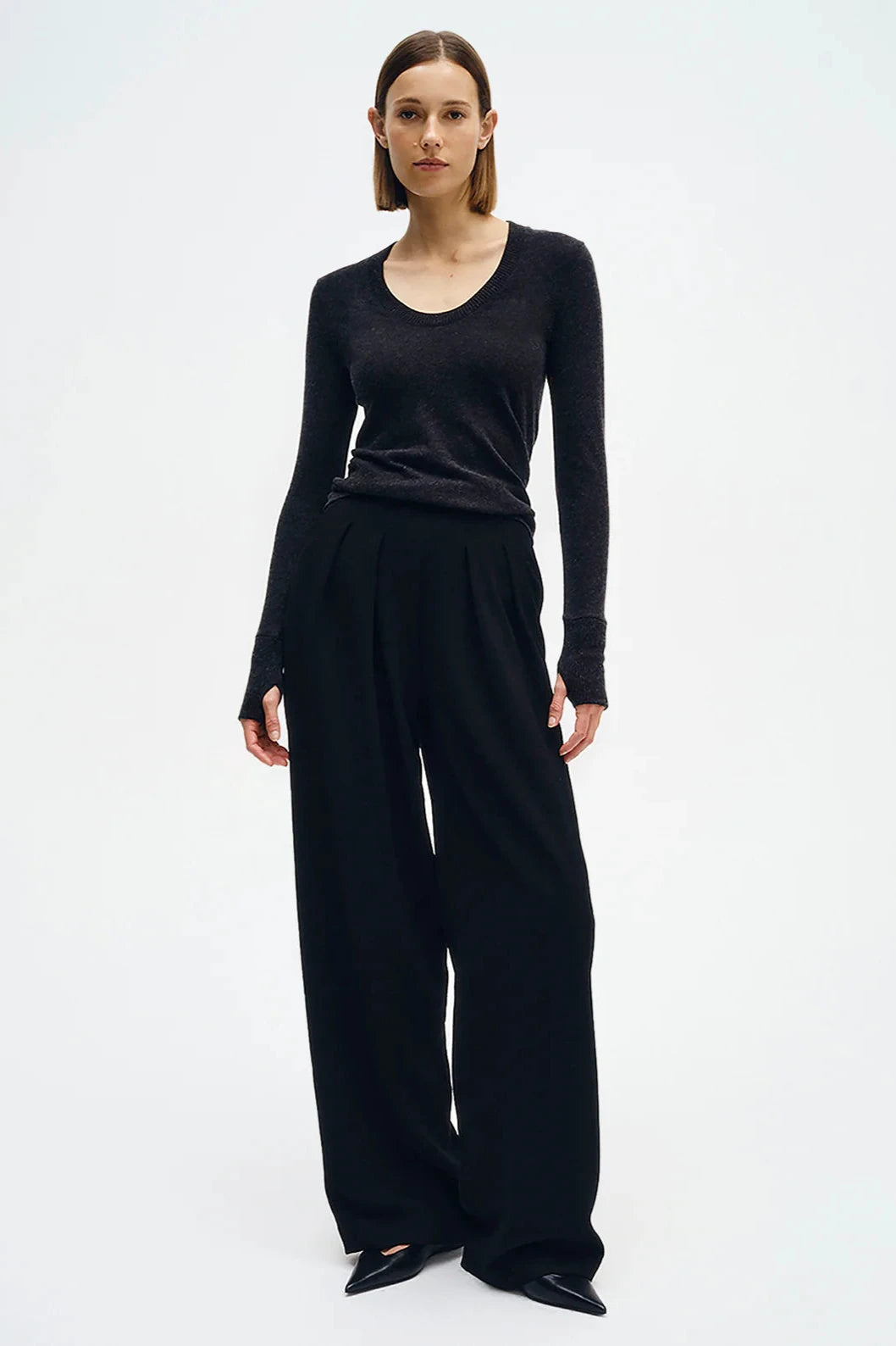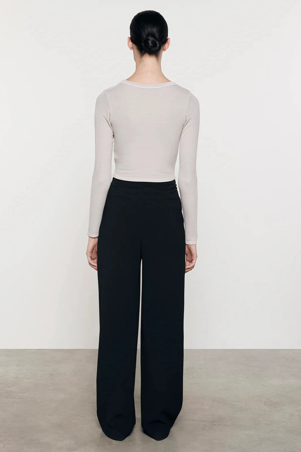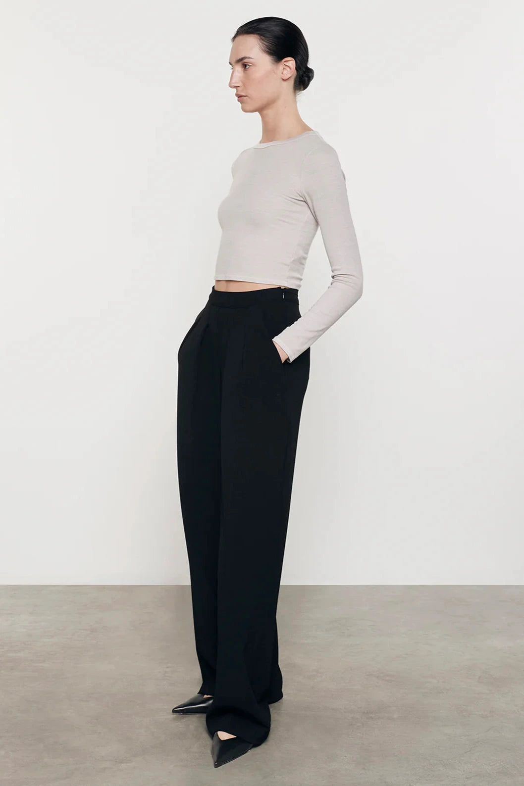 Crafted from the most lightweight and luxurious crepe, the Essential Trouser drapes softly with a wide relaxed leg throughout. Featuring functional side pockets, front pleats, and a side zip closure