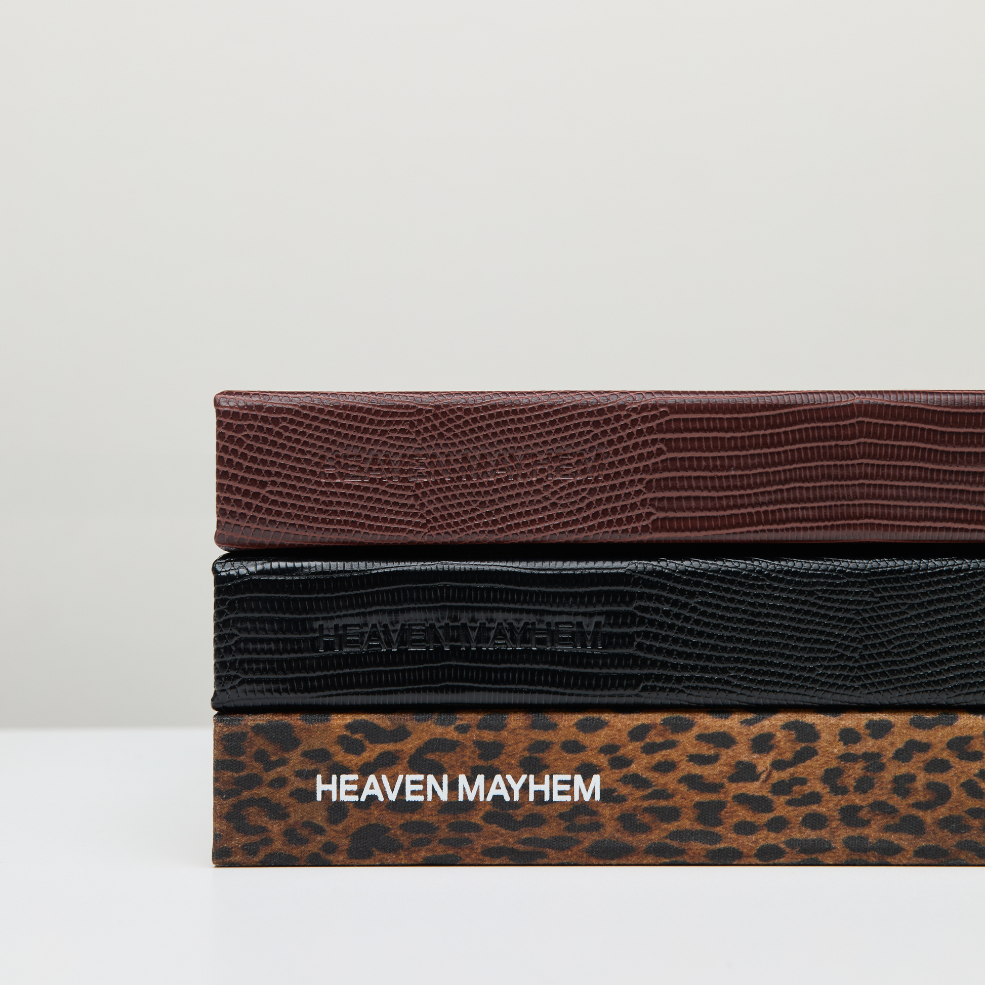 The Jewelry Book Box Collection is Heaven Mayhem’s sculptural approach to storage — where design and function meet. Disguised as timeless hardcovers, each Book Box opens to reveal a hidden interior, thoughtfully designed to store earrings, rings, necklaces, or other keepsakes.
