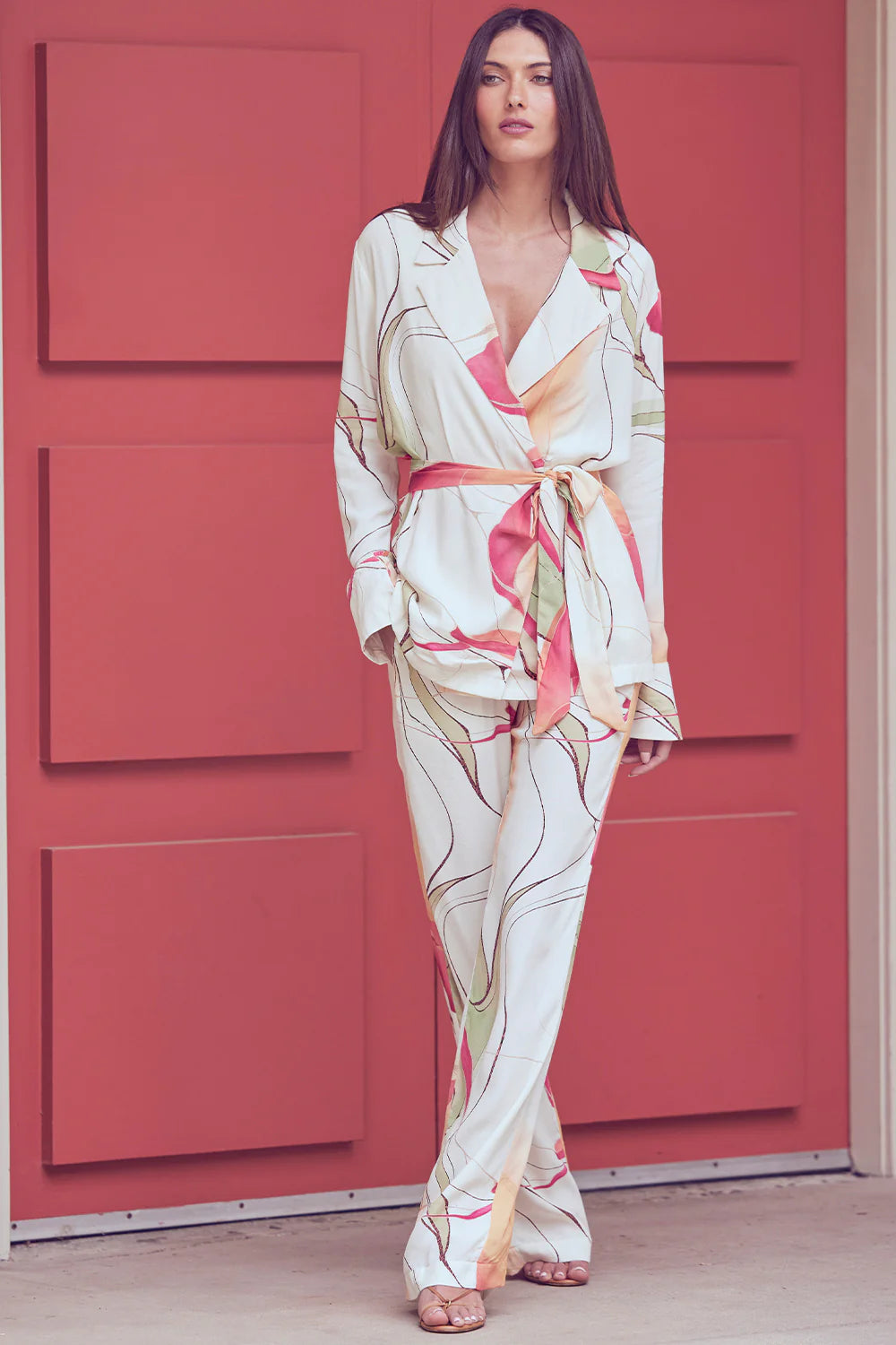 Our high-rise Rita pant is cut from our Divine Marble printed crepe. Featuring straight legs and side slant pockets. A hidden zip front and extended hook-and-bar closure. Pair with the coordinating Freja top for a head to toe Resort-ready set.