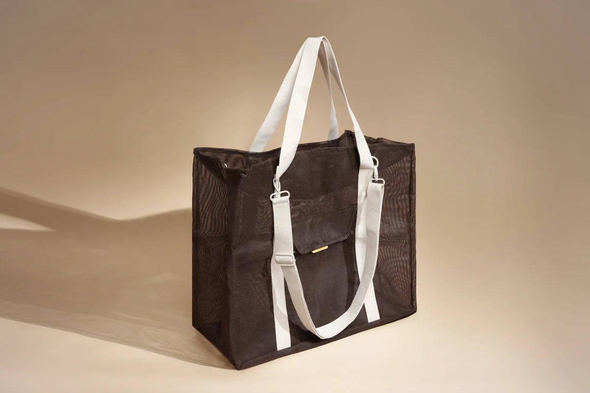 The ultimate carry-all beach bag, designed with a luxurious twist. Crafted with 100% recycled materials, this beach bag is guaranteed to fit all your belongings. Of course, we could not miss out on adding our signature brushed gold hardware to this bag, which features on the external pocket. Don’t forget to load this bag up with our new swimwear collection.