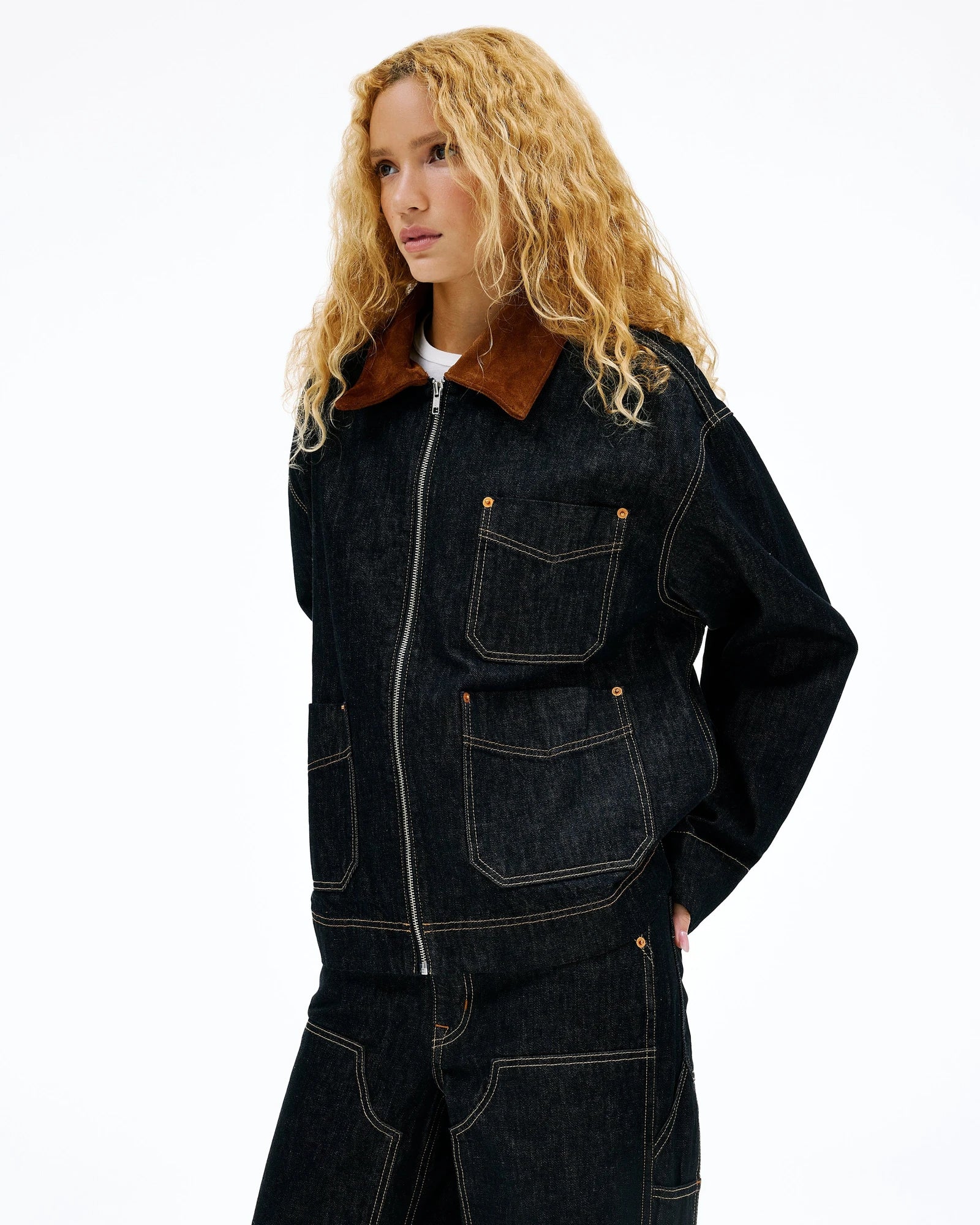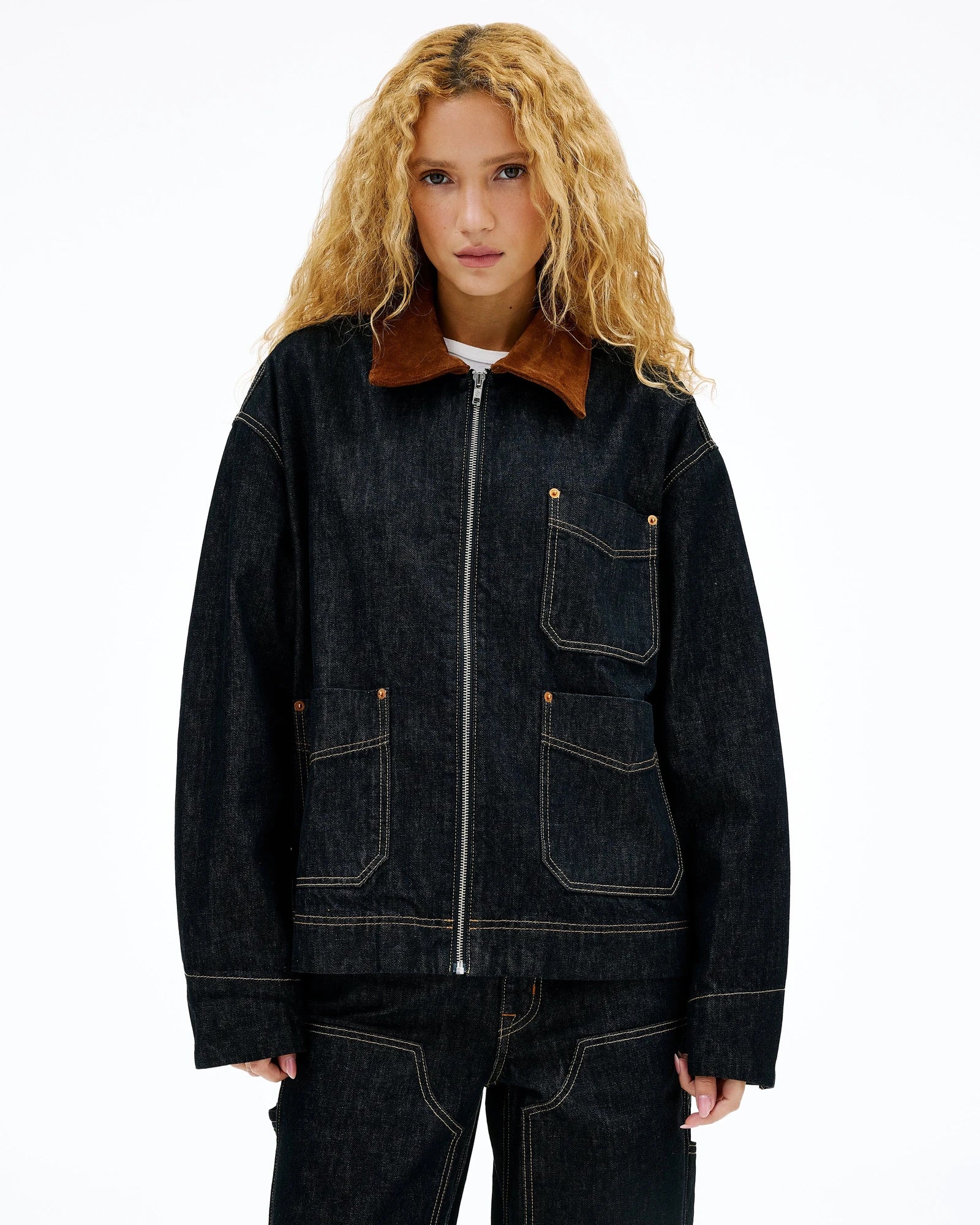 - Contrast topstitch and Corduroy Collar
