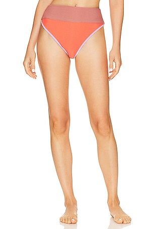 The Emmy Bikini Bottom in Oasis Colorblock is our best-selling hi-rise swim bottom. This high-waisted bottom features our ultra-soft ribbed fabric. Pair with the matching Eva Top.