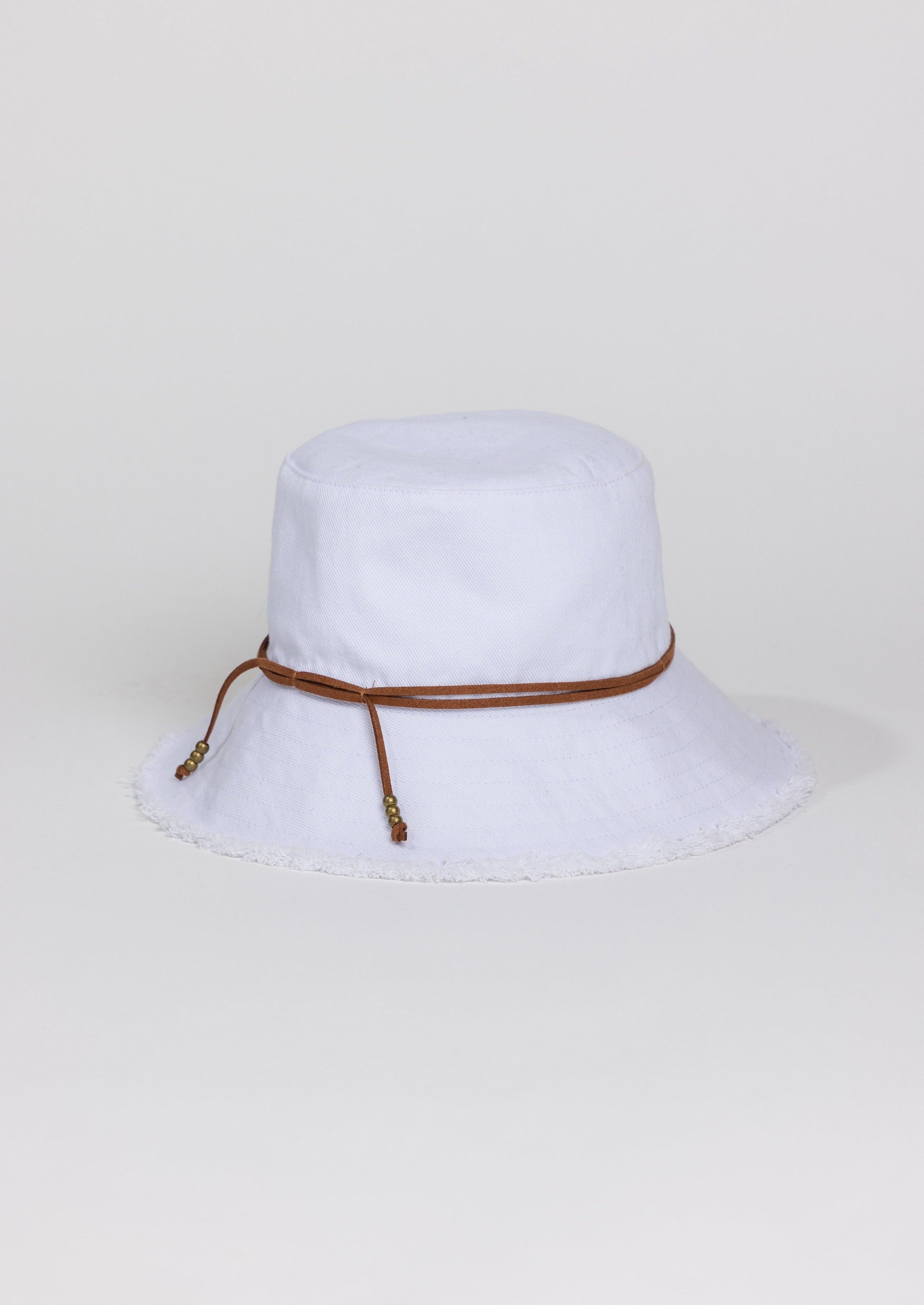 Our staple Fringed Bucket Hat with its casual edge and tie detail has added SPF protection! An iconic look, this bucket hat is a perfect style to pack right in your suitcase.