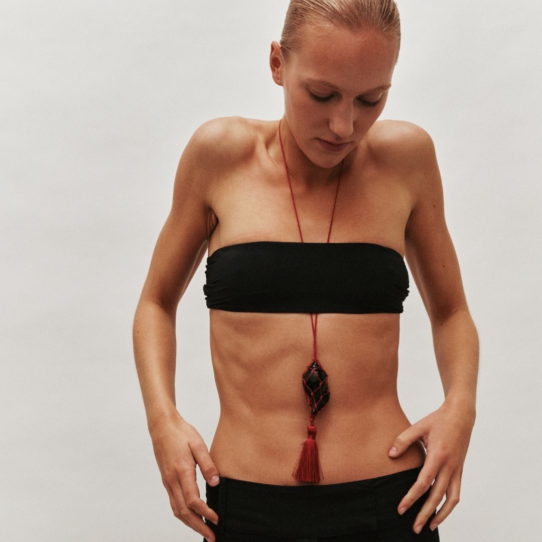 A statement in texture and form. The Sterling Necklace features a hand-knotted cord that cradles a shell within a netted structure. A bold yet effortless piece that adds an artful touch to any ensemble.