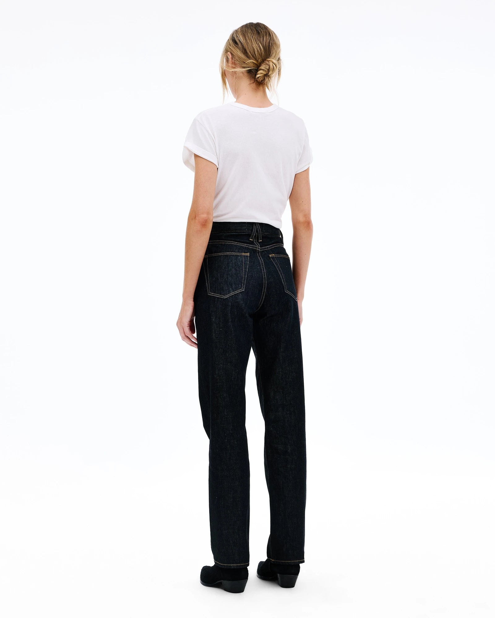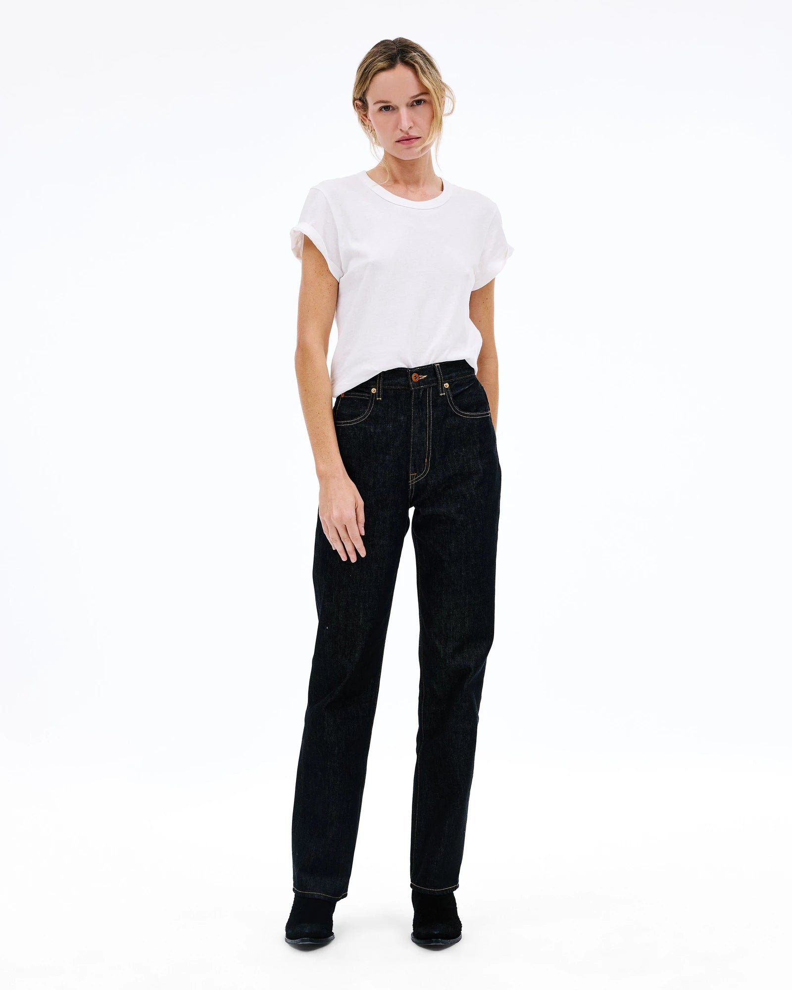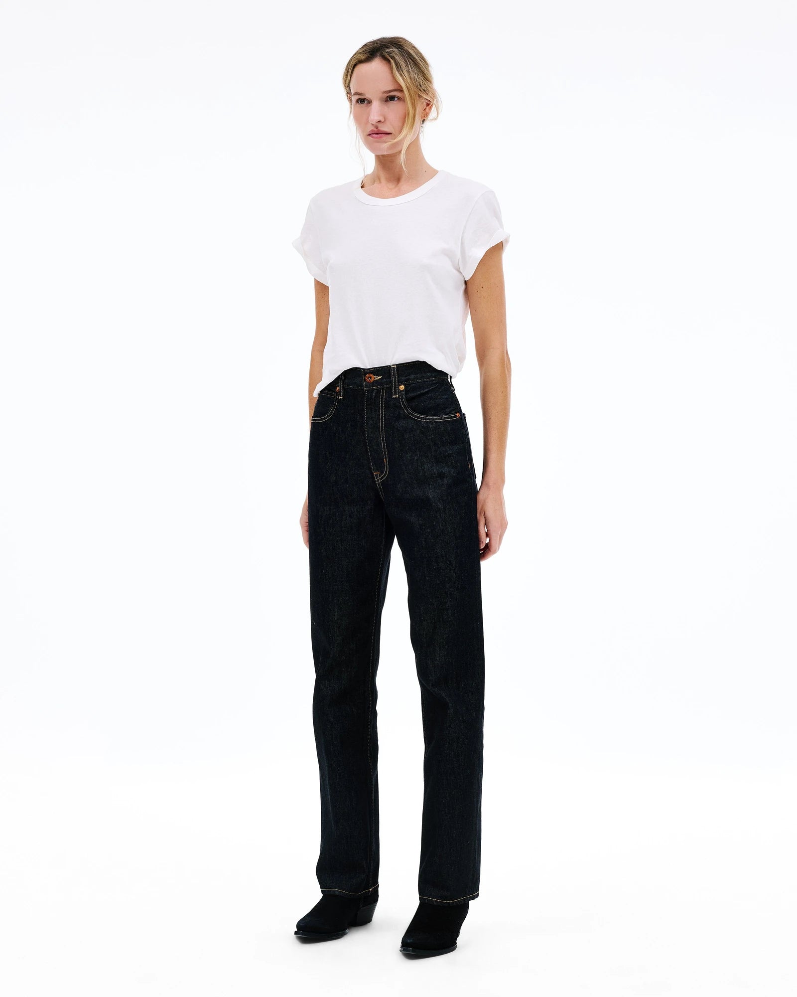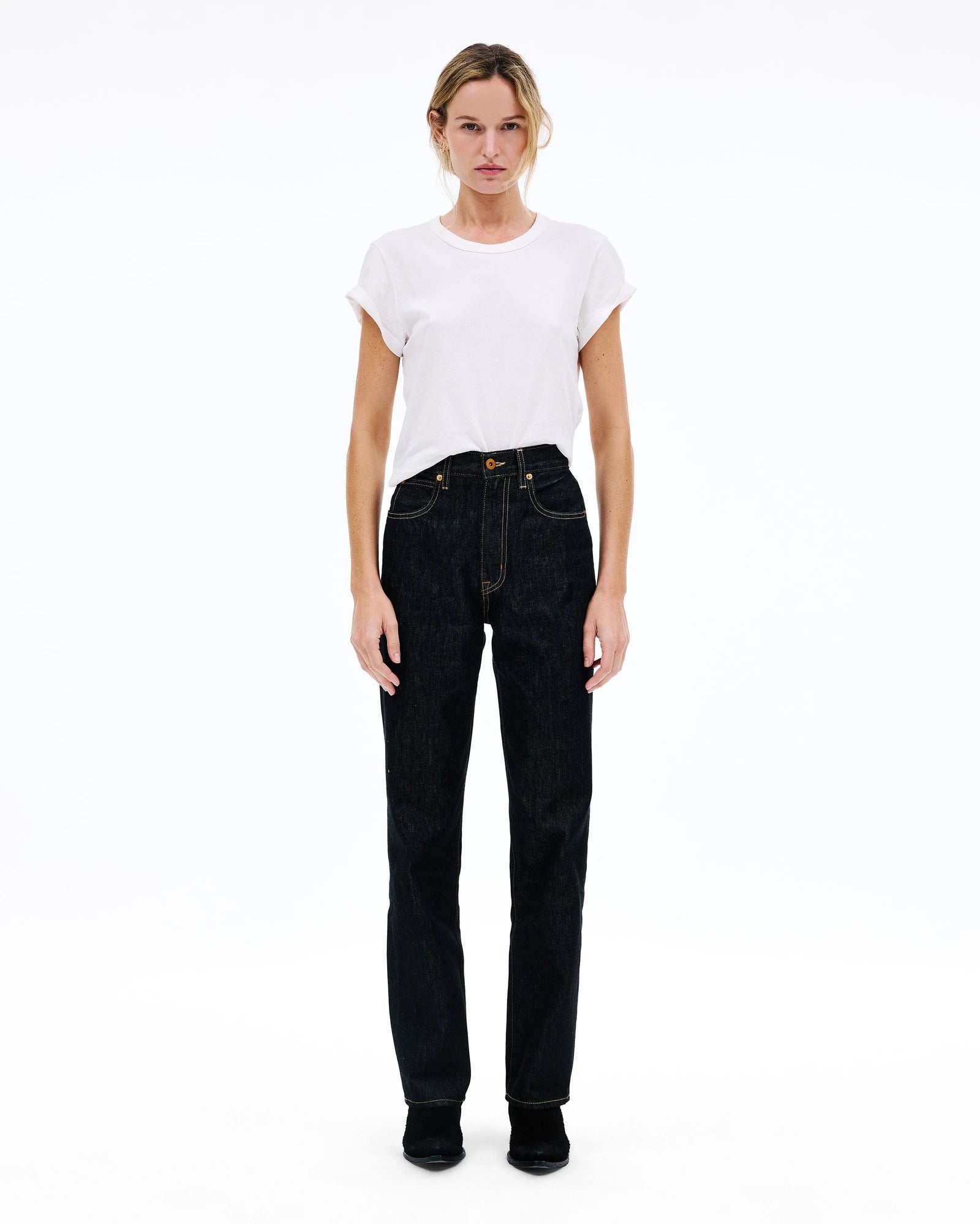 This signature style is designed to fit and flatter the feminine form, visually elongating the leg with a straight leg silhouette and high rise.