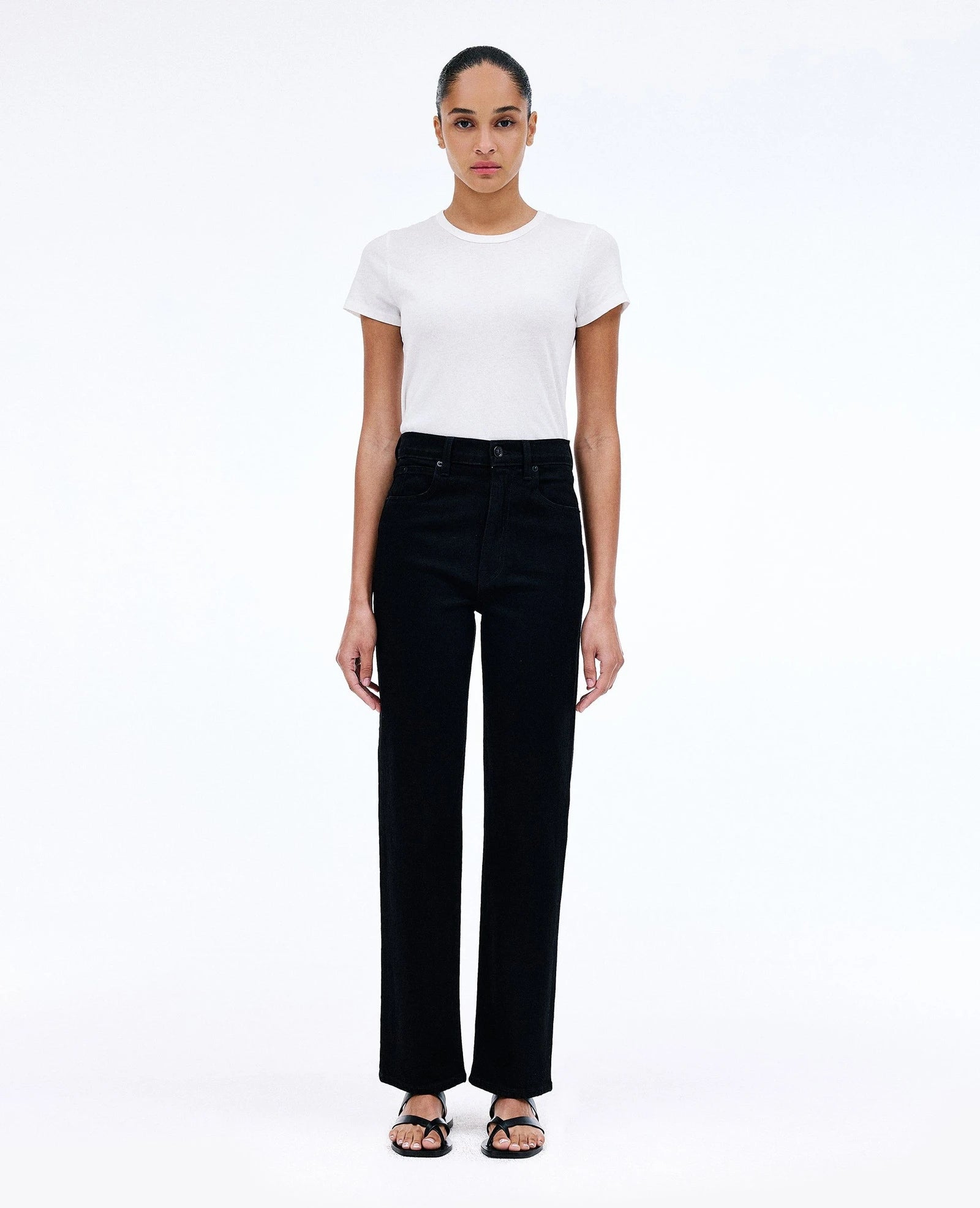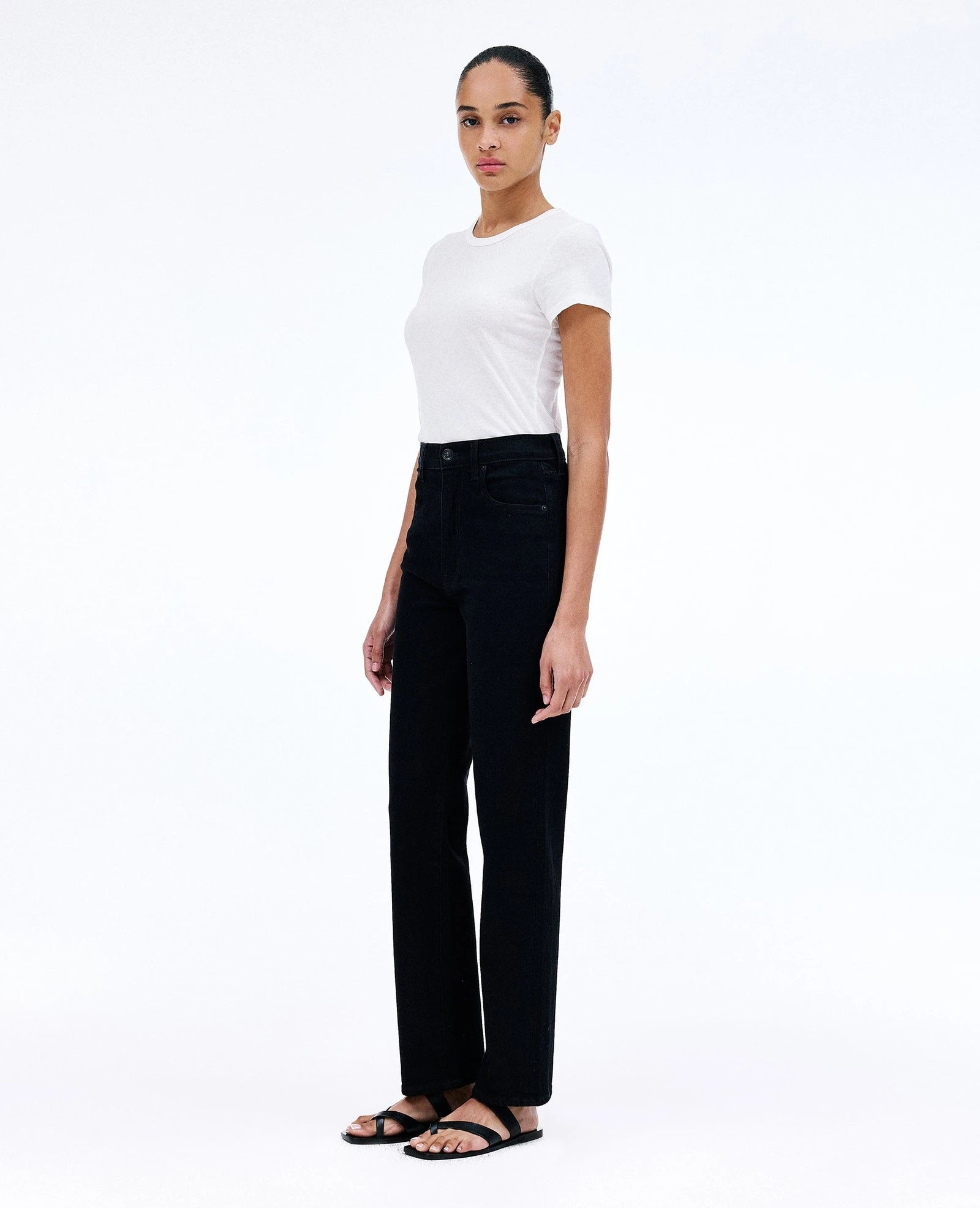This signature style is designed to fit and flatter the feminine form, visually elongating the leg with a straight leg silhouette and high rise.