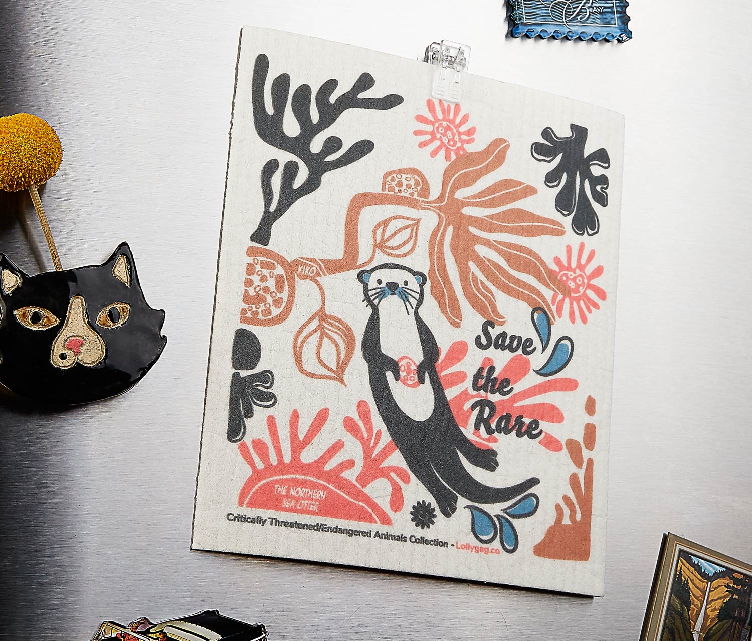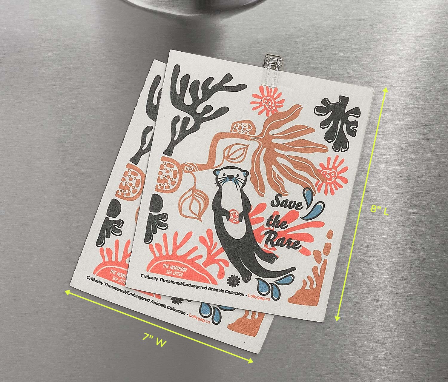 PNW Fading Fantastical Wildlife Otter Swedish dishcloth + a magnetic clip: See options in dropdown