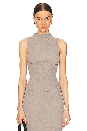 Crafted with a unique delicately expandable texture, the Puckered Sleeveless top features a lightweight, sleeveless design, chic mockneck, and easy fit. Pair it with our Puckered Pencil Skirt for a coordinated look.